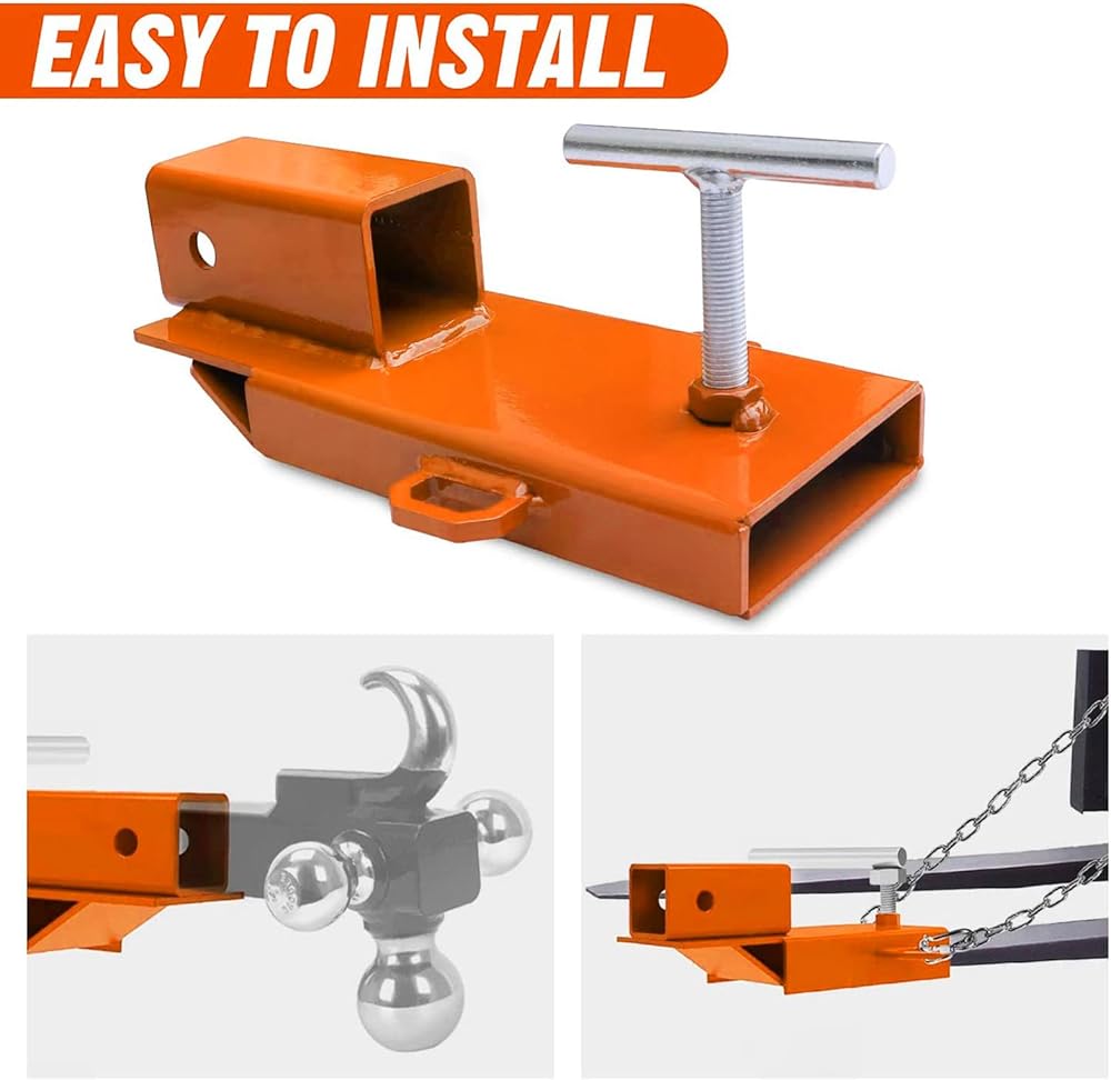 【Fitment】Clamp on forklift pallet fork trailer hitch receiver is convenient for moving around trailers and other towable implements that use a standard 2" receiver hitch. Suitable for all of your standard 2" hitch inserts. Widely used in heavy duty work of industrial, agriculture and construction business. With 3000lbs towing capacity, it can be used for various occasions, such as boat, rv, trailer, camping accessories, etc.