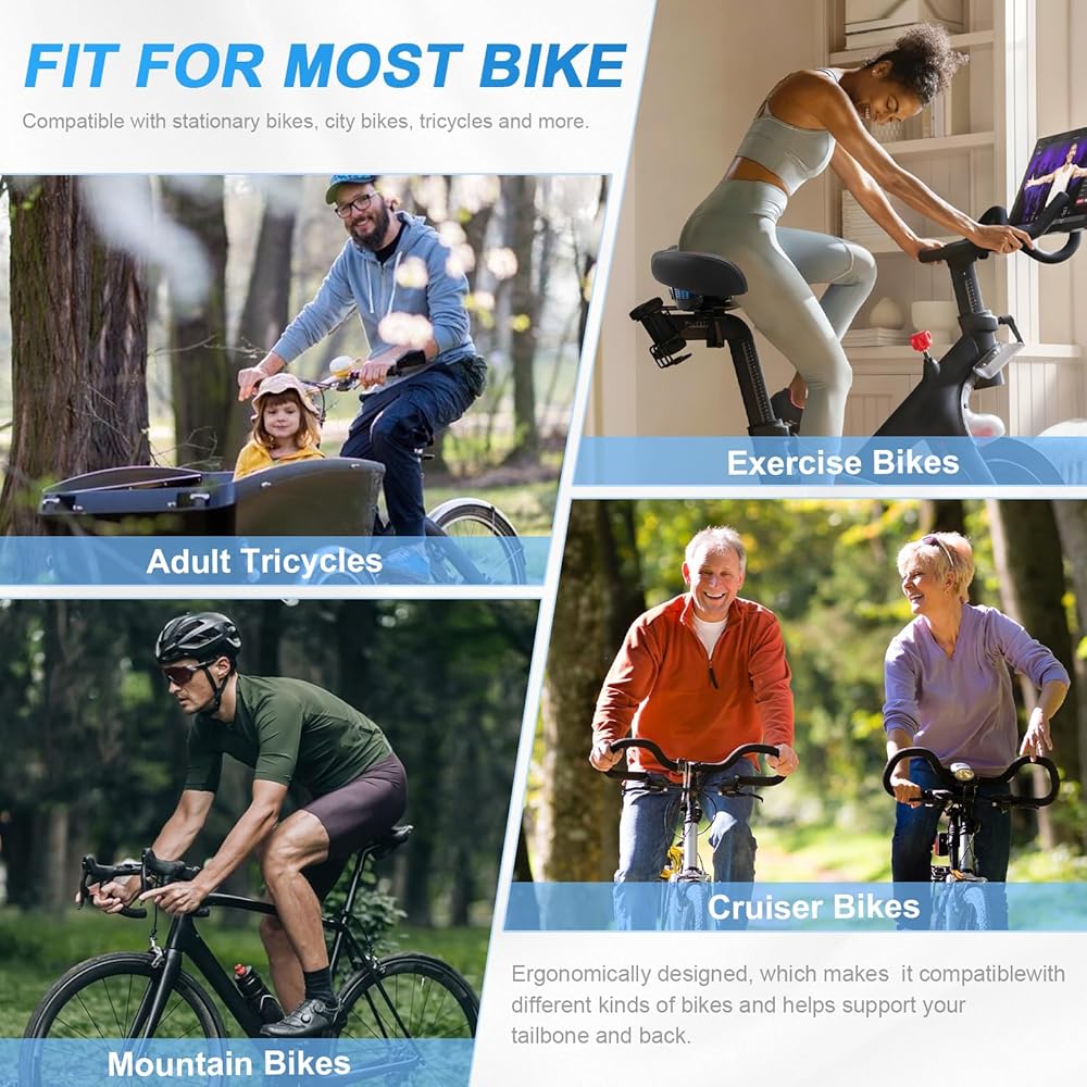 【Oversized Wide Bike Seat】 The widened and thickened design allows you to bid farewell to the traditional narrow and long bike seat, reduce 90% of the pressure on the pubic and ischial area.