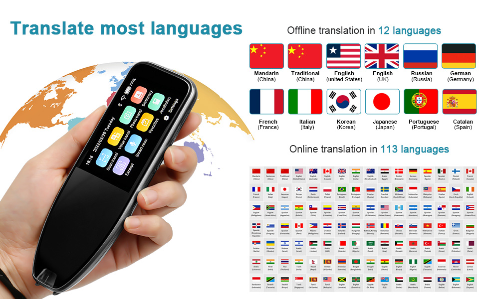 【Online Translation in 112 Languages/Offline Translation in 12 Languages】The reading pen has high accuracy, can quickly read multiple languages, can quickly scan words and translate, and is very suitable for people with learning and reading and translation disabilities. The offline translation function of 12 languages requires a translation package to be downloaded in advance.