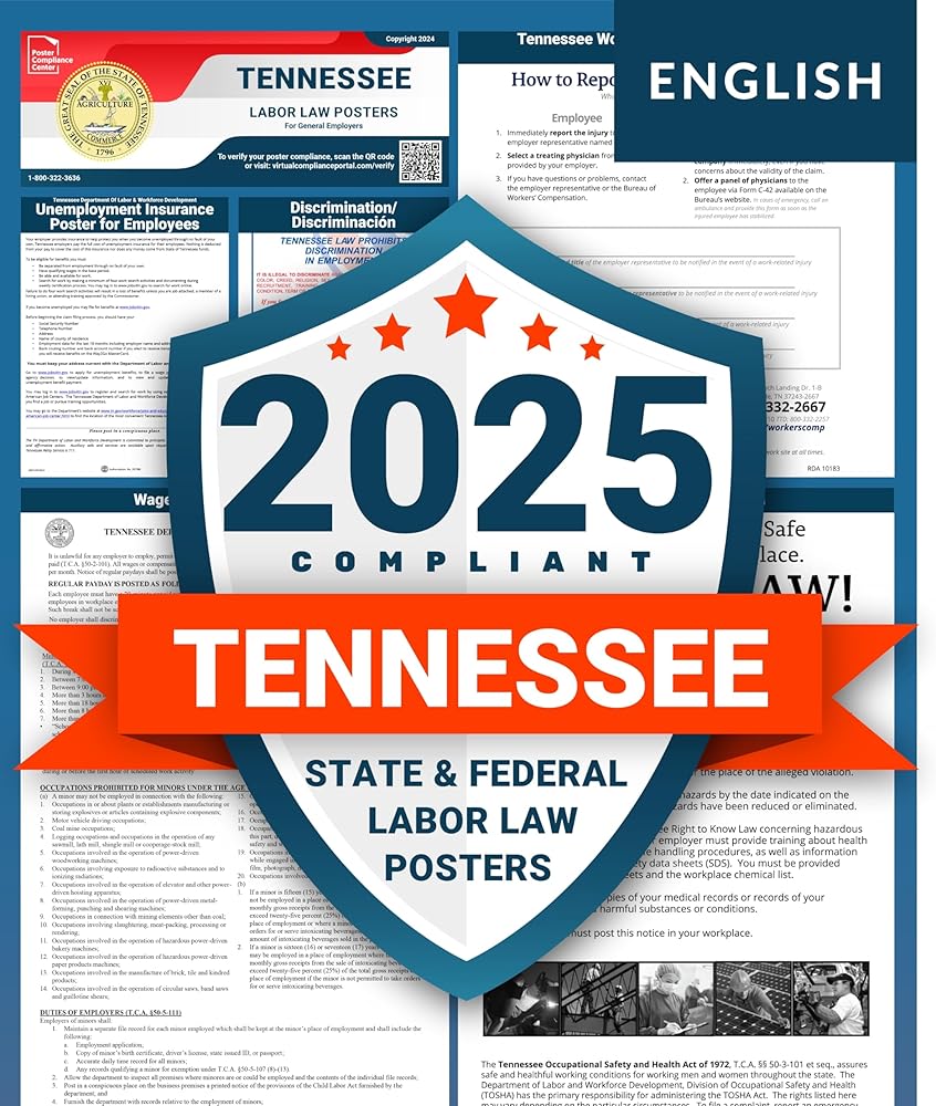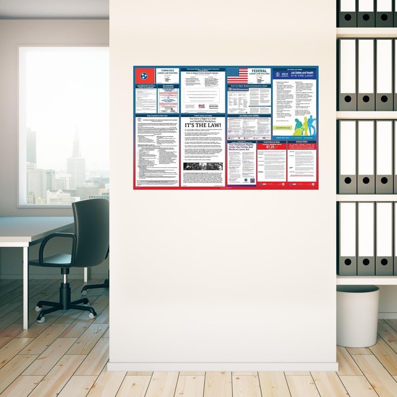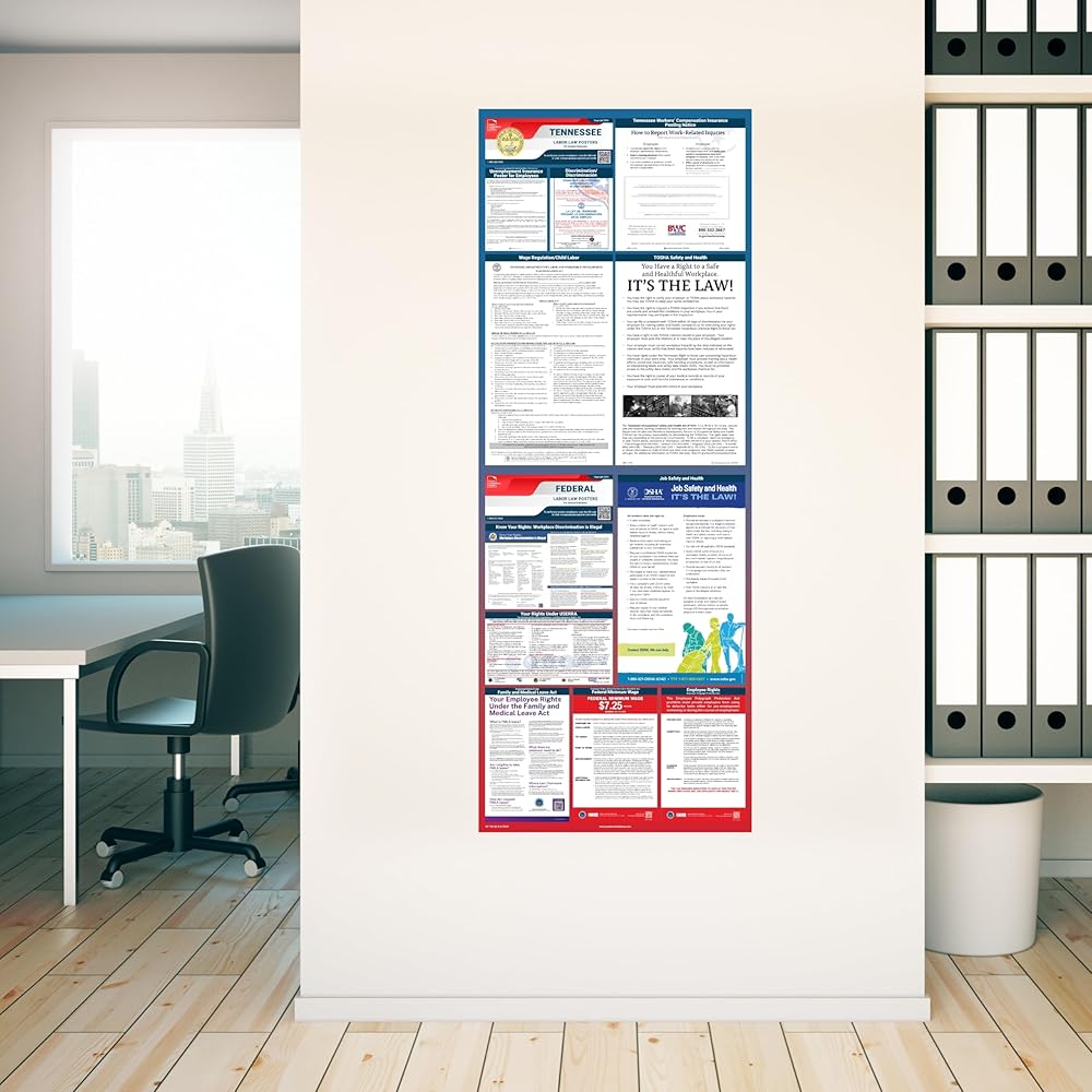 Labor Law Posters 2025 - Tennessee Labor Law Poster State, Federal, OSHA Compliant, Accurate & Up to Date, Poly Paper Labor Law Poster 2025 Tennessee, 18"w x 48"h (English)
