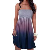 Tee Style:Reverse Tie Dye Rainbow Smocked Spaghetti Strap Mini Dress for Women , Summer Beach Hawaiian Causal Loose Sleeveless T Shirts ,