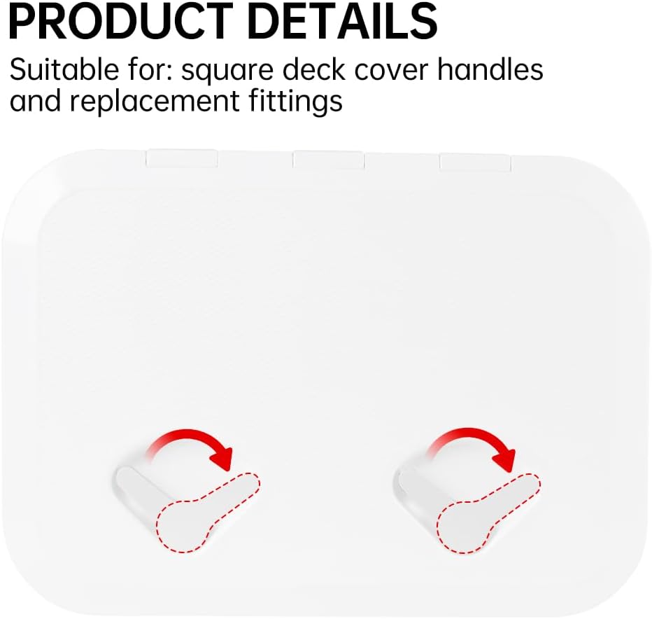 (1)【product material】High Quality nylon plastic boat hatch cover,strong and durable.Corrosion resistance,Anti-Aging, Ultraviolet-Resistant. (2)【boundary dimension】Reliable recessed handles Size: 2.91" 1.32" 1.30" (3)【Easy for Using】Easy to Install, Only screws are required (1 screw per product) (4)【Perfect replacement】 Square hatch cover perfectly replaces damaged handles/clasp (5)【Scope of application】 Suitable for square hatch cover of various sizes
