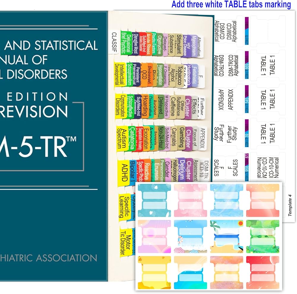 DSM-5-TR Index Tabs, 96 Laminated DSM V TR Tabs and 12 Blank Tabs,Thick Waterproof Material Color-Coded Print, Easy to Read Guide Tabs for The Diagnostic and Statistical Manual of Mental Disorders