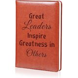 The leather notebook cover is emblazoned with gratitude and a touching quote, "Great leaders inspire greatness in others." A leader is someone whose actions inspire others to dream more, to learn more, to do more, to be greater. This leather notebook is the perfect gift for anyone you want to thank.