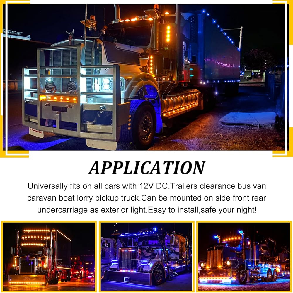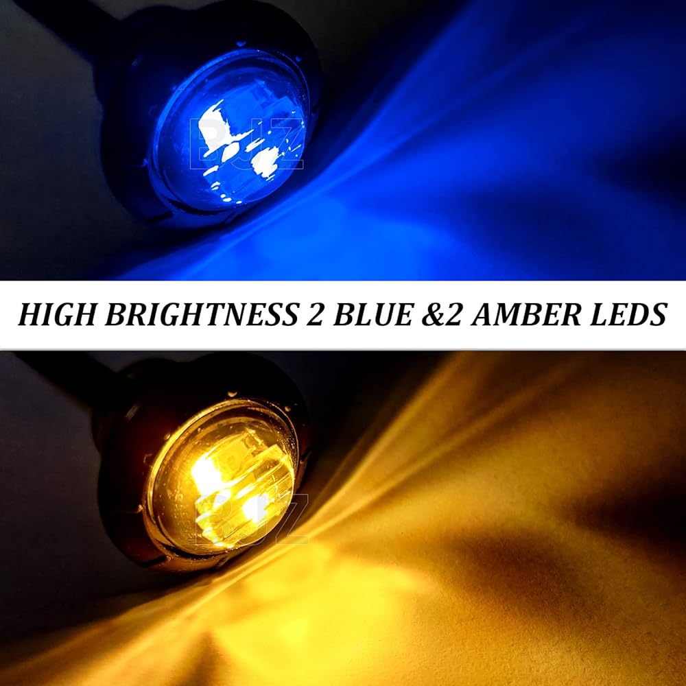 BJZ 3/4" Round Trailer Marker LED Lights Amber to Blue Dual Color Side Clearance Tail Bullet Light 12V 4LED Indicator Light w/Clear Lens for Trailer Truck Van RV ATV Bus, 10Pcs
