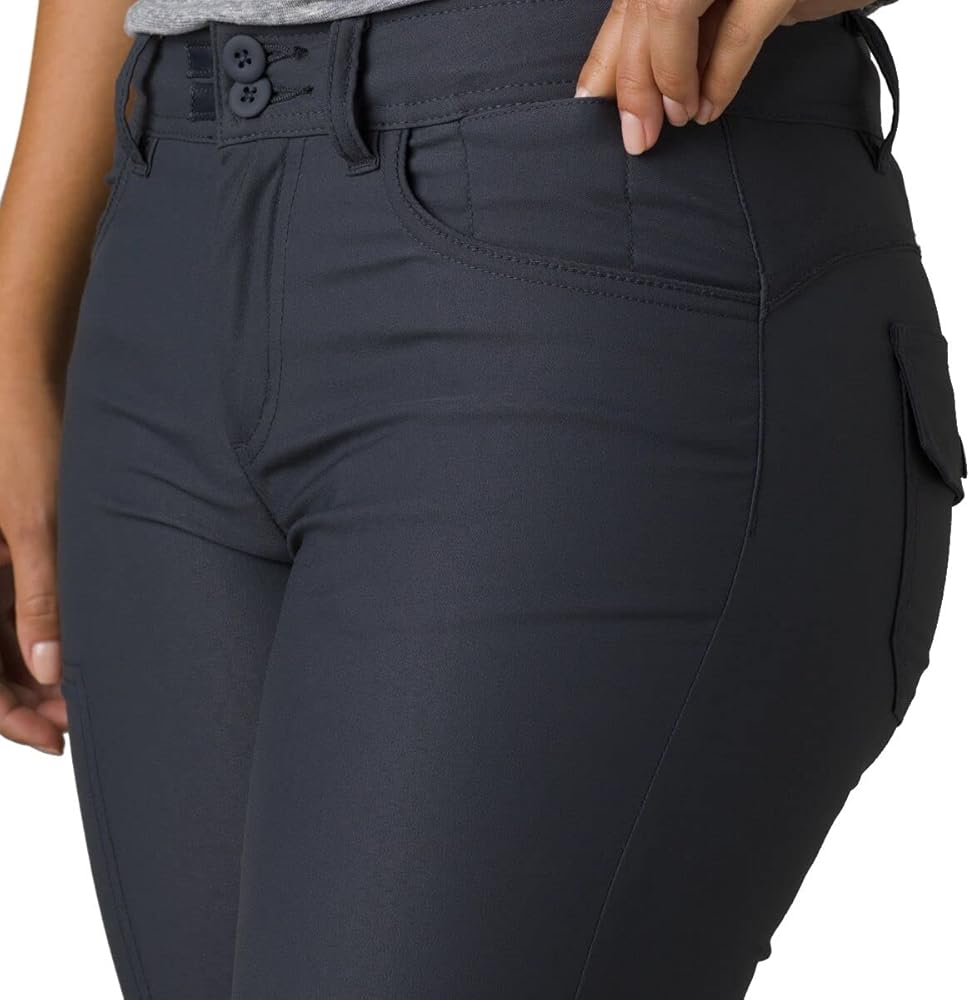 Classic and sophisticated, the Prana Halle Pants II offer everyday comfort so you can focus on your work. Relaxed fit drapes comfortably over the body and leaves room for unfettered movement. Wrinkle-resistant, lightweight, trouser-styled pant that packs up for easy traveling. Stretch Zion fabric technology provides extra durability, and two-way stretch properties add a comfortable fit for all activities. Pant rolls up to the knee and fastens securely with a button and tab closure. Zipper fly and button closure. Four-pocket design. Hidden zip stash pocket at upper leg. 97% nylon, 3% spandex. Machine wash, tumble dry.