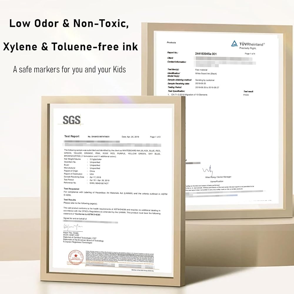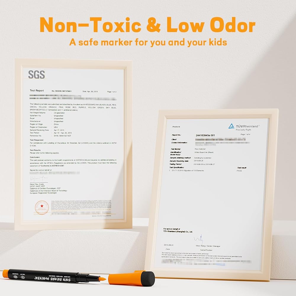 【Safe and Non-Toxic】The white board markers Xylene & Toluene-free ink, low odor, non-toxic, conforms to EN-71, ASTMD-4236 , safe for kids and adults , can be used with confidence.