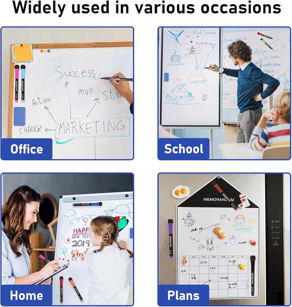【Fast-Drying on Different Surface】Magnetic dry erase markers can be used on non-porous surfaces such as whiteboards, metal, glass, plastic etc, fast drying, is ideal for office, school and home use.