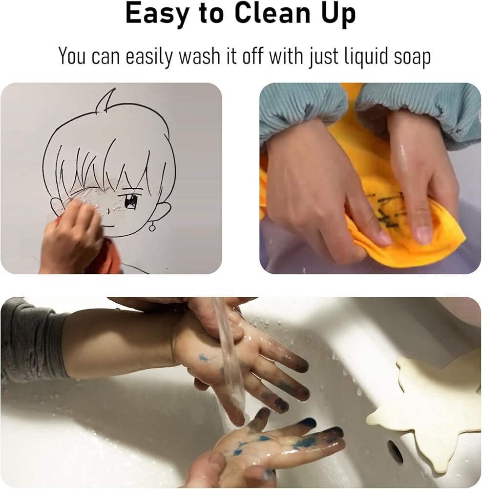 【Easy to Clean Up】If you accidentally get ink on your hands or clothes, don't worry, you can wash it off with liquid soap or detergent, but light colored clothes may leave a little stain. If you have any dissatisfaction, please contact us, we will give you a satisfactory answer within 24 hours.