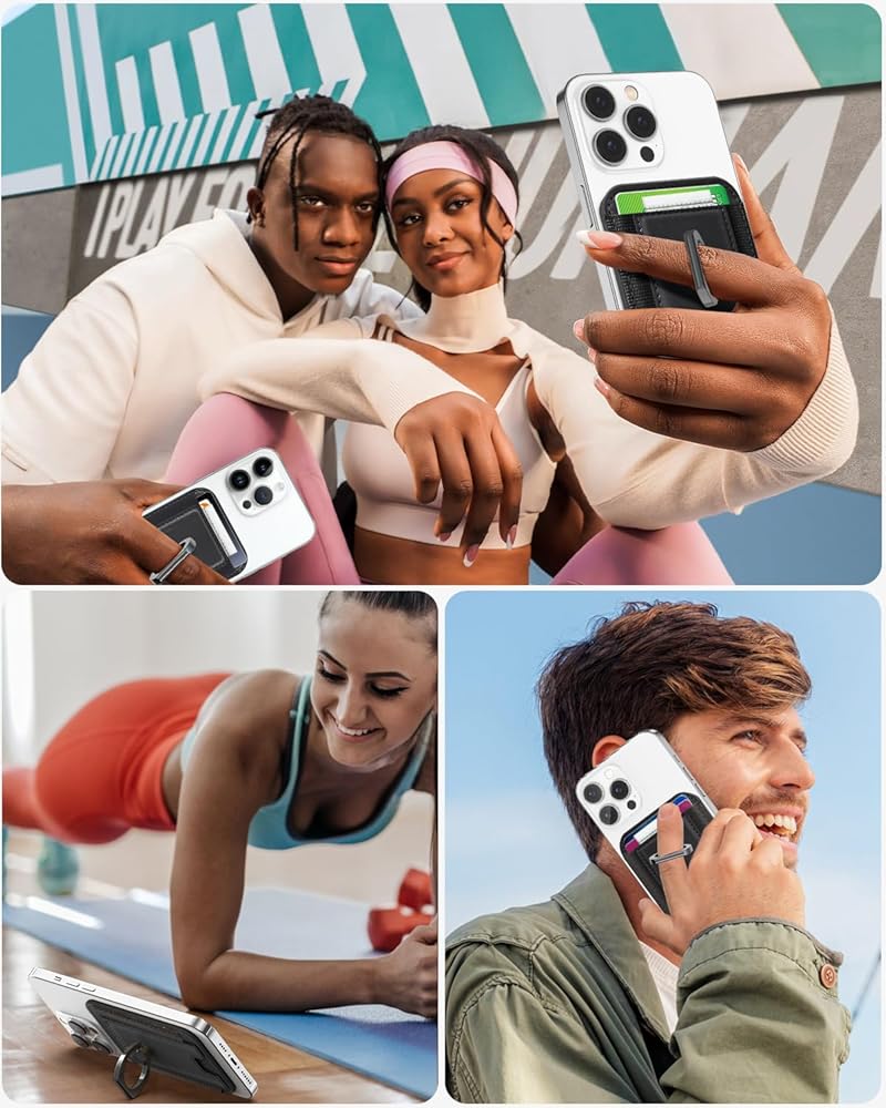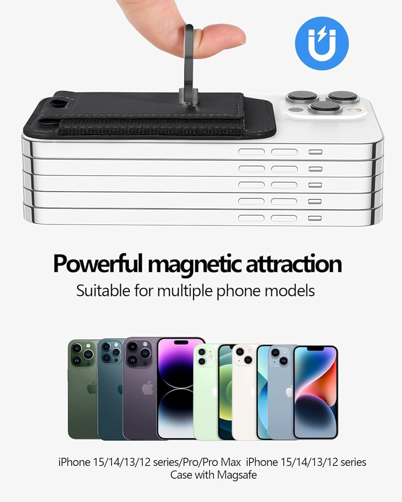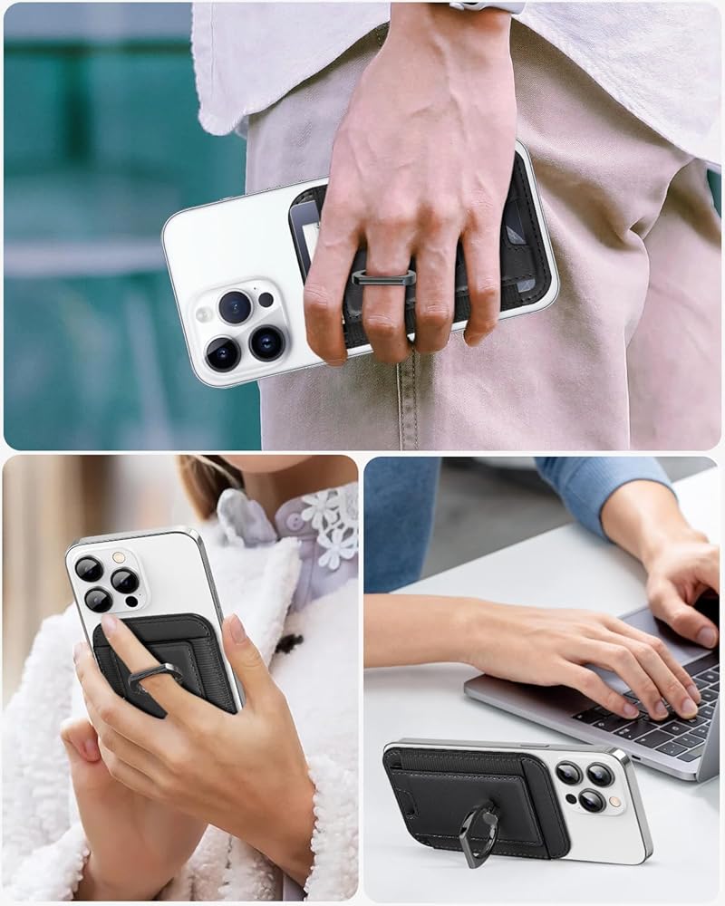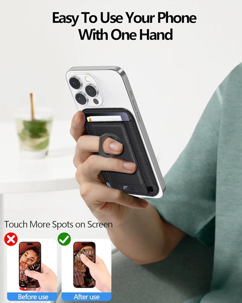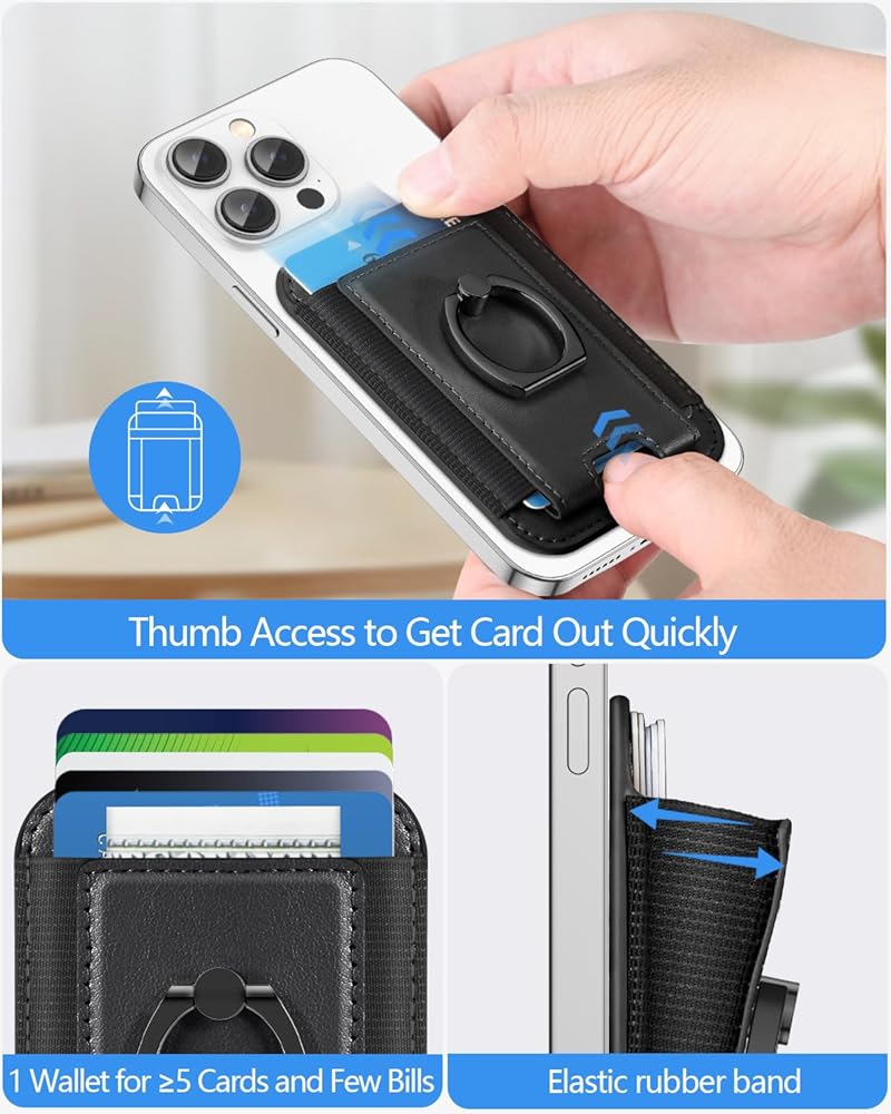 Miroddi for Magsafe Wallet with Grip, Strongest Magnetic Wallet Card Holder for iPhone 16/15/14/13/12 Series, Leather Magnetic Phone Wallet with Ring Stand, Fits 6 Cards, RFID Blocking, Slim, Black