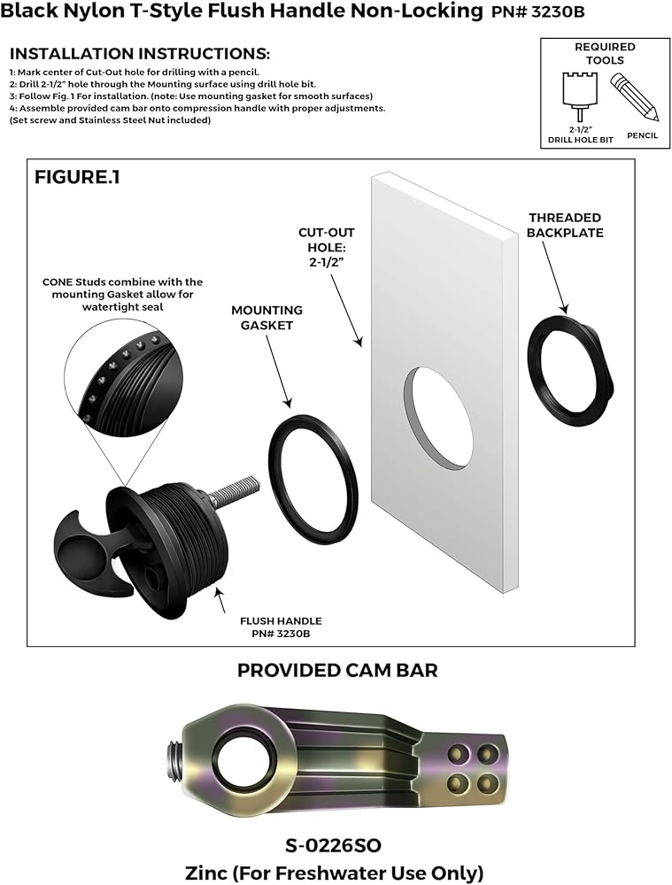 - Includes one 3/4" fastener and one cam bar