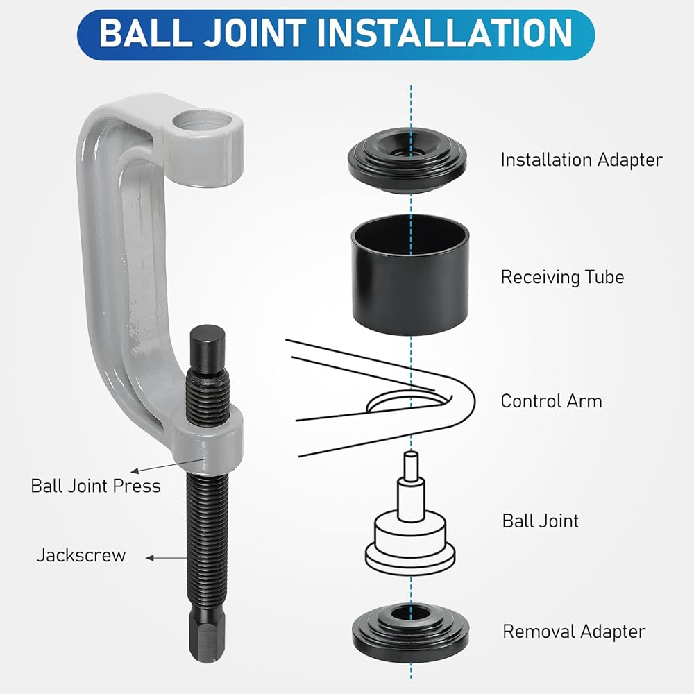 Premium Quality: This ball joint tool kit is made of solid carbon steel with anti-rust finish, perfect for removal/installation of press-fit parts, such as ball joints, universal joint and truck brake anchor pins.