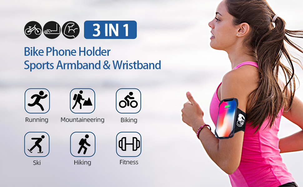 • 🏃【3 IN 1 Running Phone Holder】🏃 The running armband is versatile in nature, comes with universal running armband, wristband and bike phone mount, there are 3 ways to use, can be used as armband/ wristband phone holder/ bike phone holder. If you have any problems with your product, you can always contact us, we are at your service 24 hours a day.