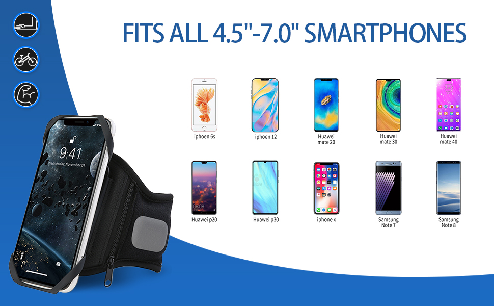• 🏃【Widely Compatibility】🏃 This running phone armband uses high quality elastic bands and Velcro, which allows you to adjust them to suit your body shape. Compatible with 14 Pro Max / 14 Pro / 14 Plus / 14/ 13 Pro Max / 13 Pro / 13 / 13 Mini, Samsung S23/S22+/ S21 and all 4.5-7”phones. The mounting strap of bike phone holder is adjustable for diameter of handlebar or stem from 1.5~3 cm.