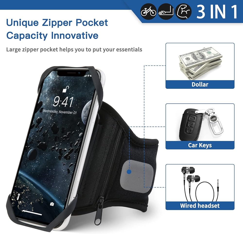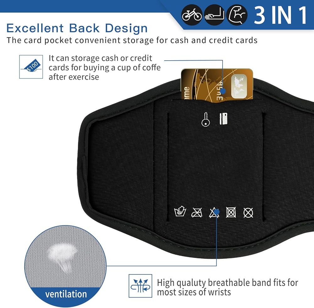 • 🏃【Armband with Earbuds/Card/Key Bag】🏃 Our running phone armband has unique zipper pocket design are practical allows you to place your earphone or Key. Additionally, A small pocket located at the back of the armband provides space for storing credit cards, cash or keys, keeping your valuables safe and secure while on the move.