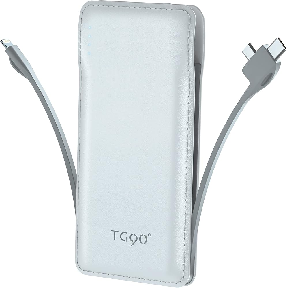 TG90° Portable Charger with Built in Cable, 10000mah Power Bank Type C USB C Cell Phone Thin Slim Lightweight Travel Tiny Charger Backup Battery Pack Compatible with Smartphones and All USB-C Devices