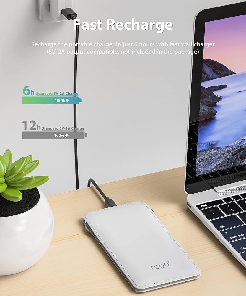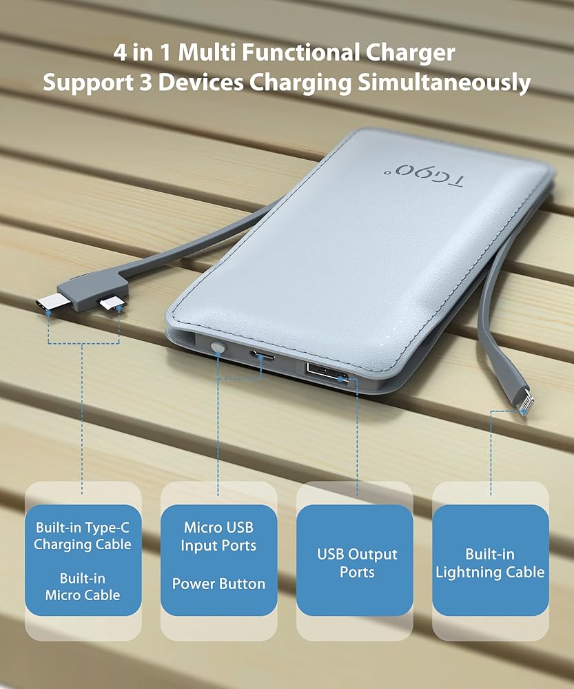 ★【Ultra-slim Power Bank】Only 0.58inch thin ;The Most Slim Power Bank as ever; the most powerful Power Bank 10000mAh, battery charger, fully charges an iPhone 6/7/8 up to 2.5 times within 1.5 hours or an iPhone 6 Plus/7 Plus/8 Plus up to 2 times within 2 hours or an iPhone X/Xs up to 1.8 times within 2.5 hours; travel around with TG90° in pocket.Portable phone charger with built in cable,portable charger, portable charger power bank,power bank with built in cables, external phone battery charger. It compatible with iPhone 15、iPhone 15 Plus、iPhone 15 Pro、iPhone 15 Pro Max and etc.