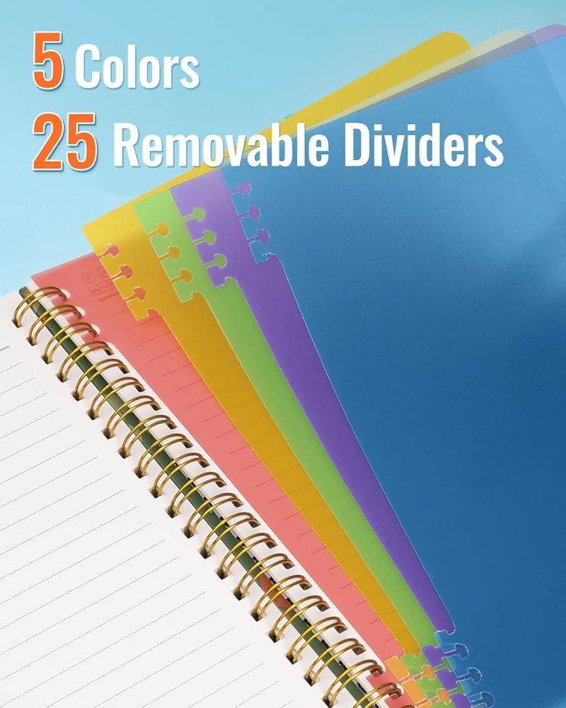 25 Removable Dividers(5 Set): The dividers are easily removable, making it convenient to reposition or remove them altogether. Whether you need separate sections for different subjects or prefer a minimalist approach, our notebook offers the flexibility to customize your layout as per your preference