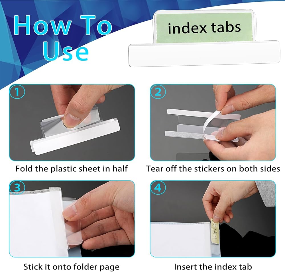 Versatile Usage - These sticky plastic divider tabs offer utilization in diverse settings, including homes, office, conference rooms, warehouse and more, them for large-scale categorization, labeling tasks and DIY diary such as file categorization, note organization, memo recording.