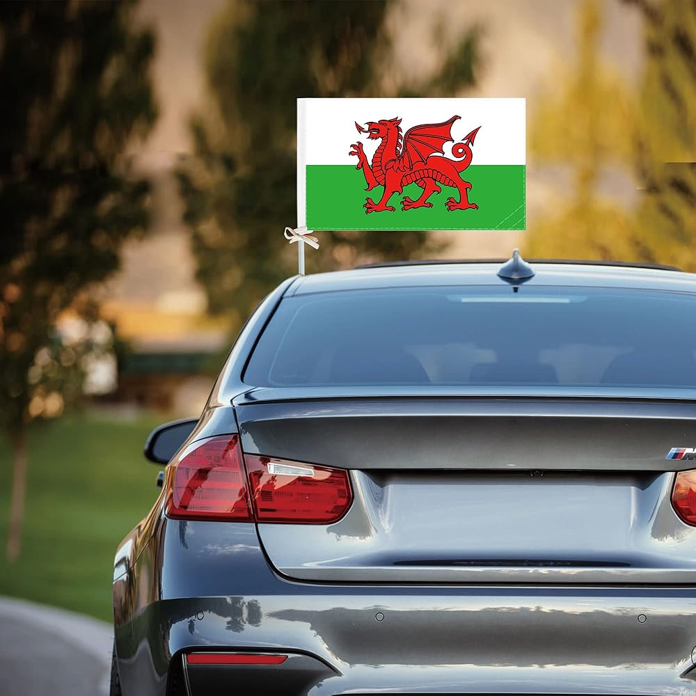 ★Two pcs car flags and two pcs flagpoles included.The size of flags is 8×14 inch,The length of flagpoles is 16 inch. Reinforced hook help to attach to the car window.