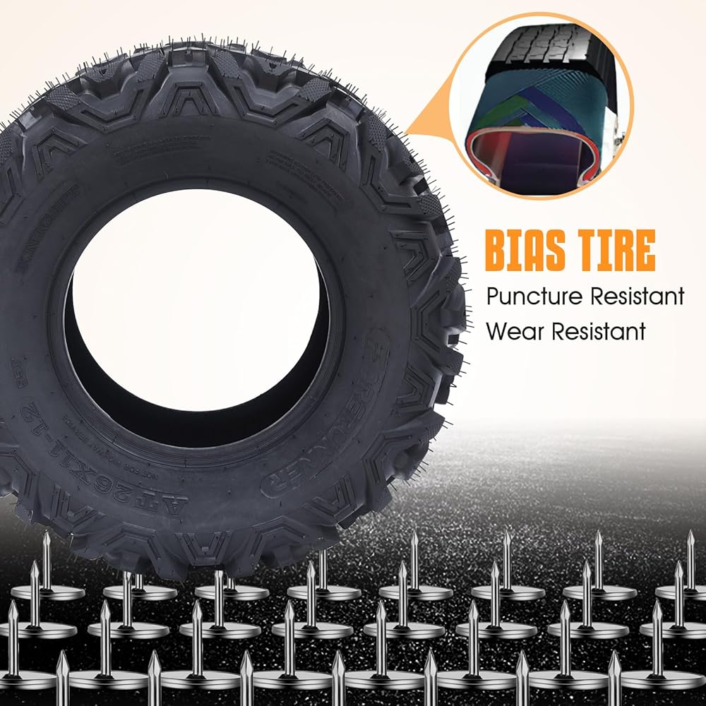 Terrain-Specific Design: The tire is specifically designed to excel in various terrains such as mud, sand, and rocky landscapes, making it a perfect replacement tire for your ATV, UTV, go-kart, and golf cart.