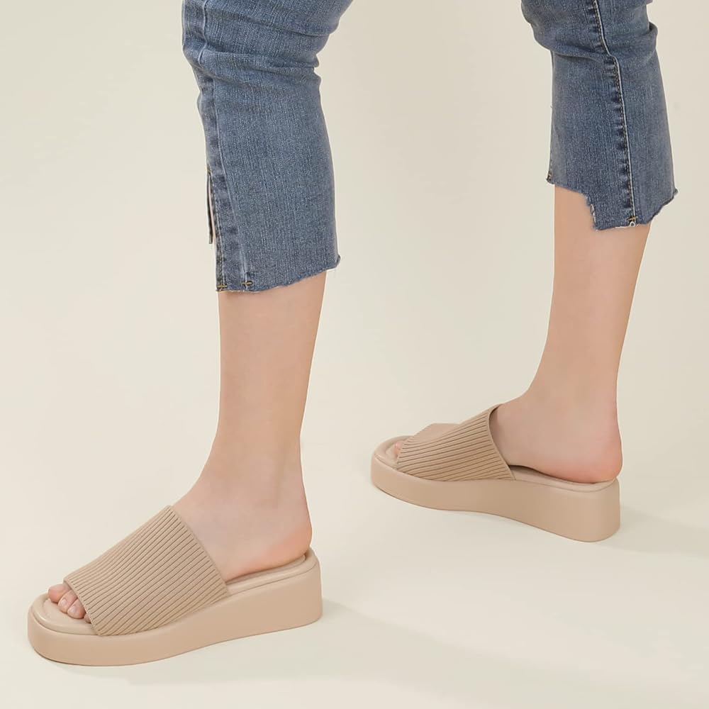 Steady And Easy to Walk - This 2.2 inches platform wedge slippers offers a stable balance and good arch support. The platform wedge is stylish in this summer.