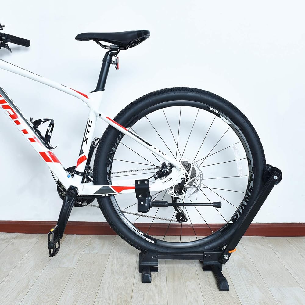 ✓【Perfectly Hold Your Bike&Fit 20"-29"】- Most Stable Bike Storage Garage: Spring-loaded arm easily hold front wheel without risk of scratching rim or spokes,The bike's front rear wheel sitting in the holder is much deeper than others, so it stays firmly in the holdder.Dual Arm is better to hold heavy bike than Single Arm Stand.