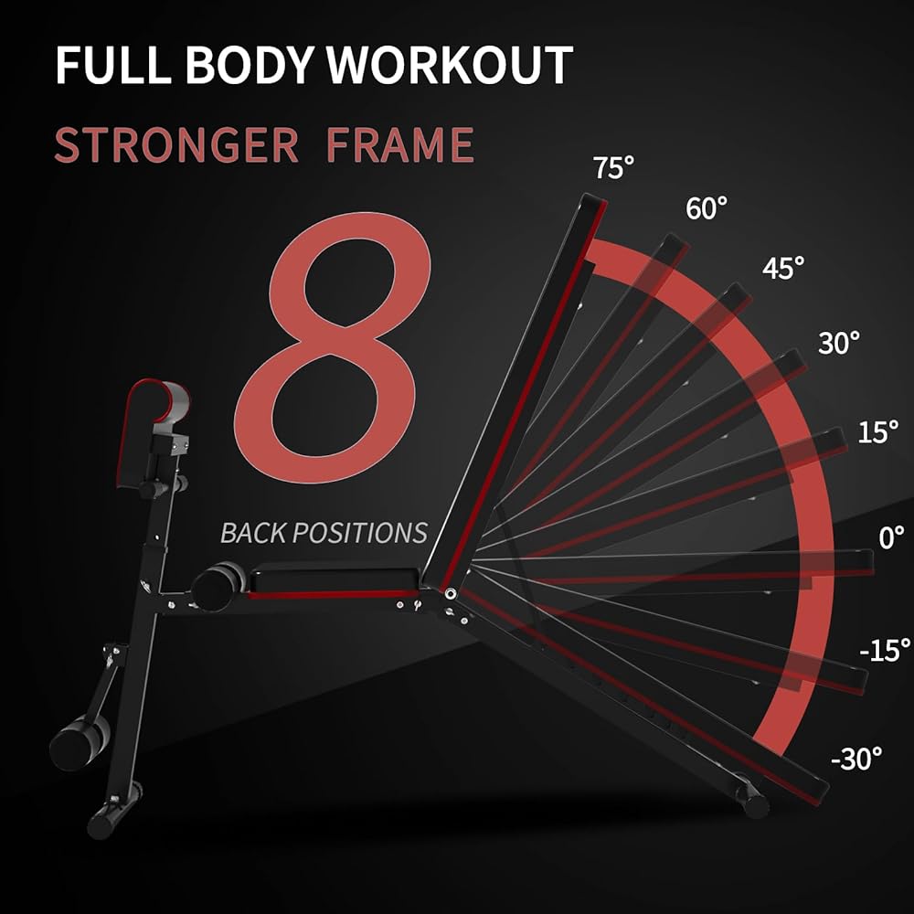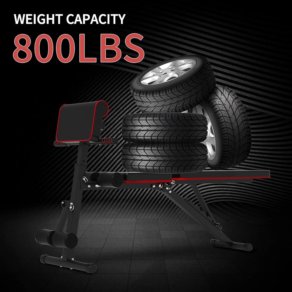 Adjustable Weight Bench for Home Gym Foldable Incline Decline Workout Bench Press for Full Body Strength Training Bench Supports up to 800lbs with Two Exercise Bands for Press Sit up Bench