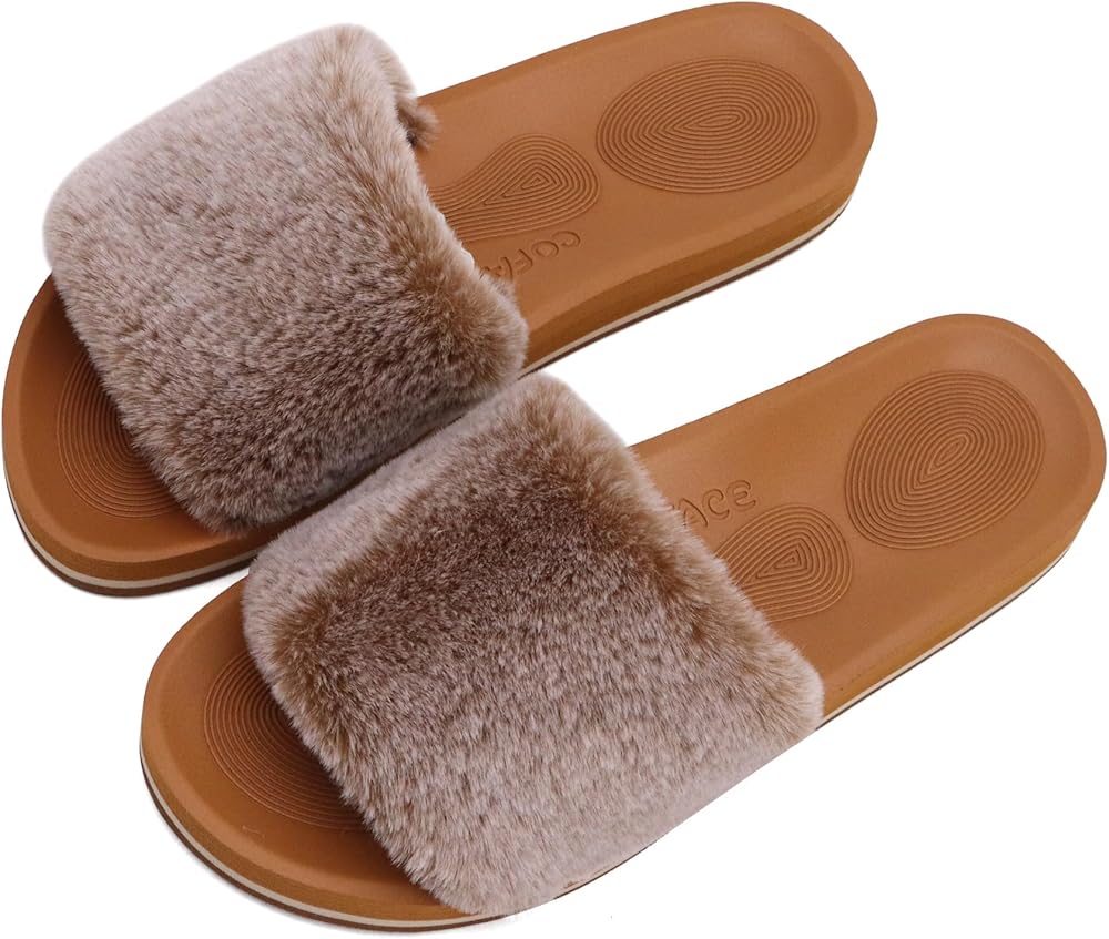 Coface soft and non-slip Memory Foam Mule Plush Slippers can perfectly adapt to your feet. It is a cozy house shoes for women to wear indoor and outdoor.The easy slip-on design sliders, along with high-quality fleece lining that encompasses your feet very well and offers soothing comfort.