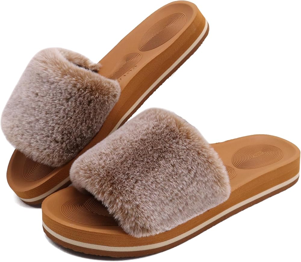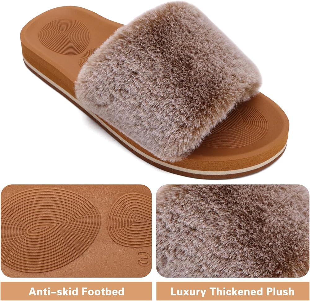 【SIZE TIP】These casual plush slide slippers come in 8 sizes (size 5,6,7,8,8.5,9,10,11) could fit all standard. These women sliders are perfect gifts for Christmas,Valentine's Day, Mother's Day, Birthday.