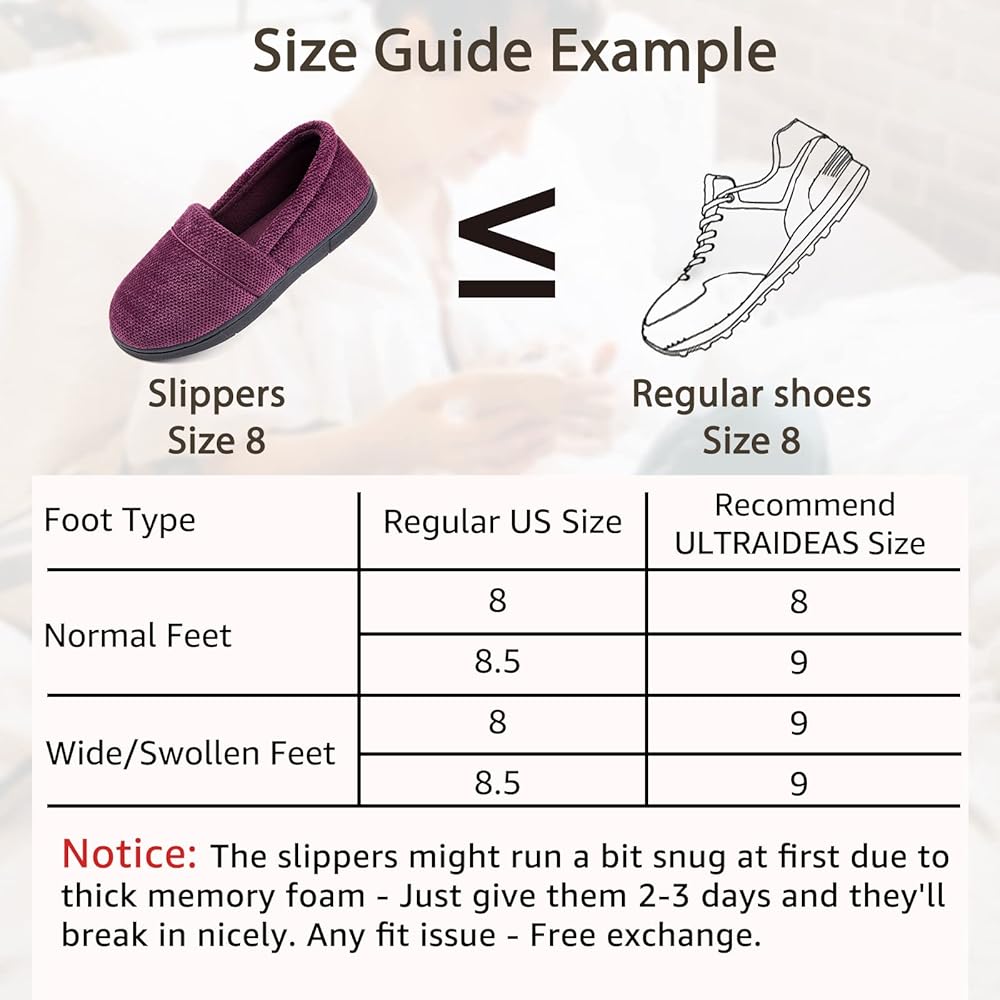 Size Tip ➤Slippers run a little small, won't fit over swollen feet. If you wear a size 7 / 7.5 in regular house shoes, a size 8 will likely fit you best. ★ If you have any questions, we are free to help you.