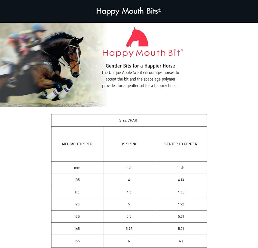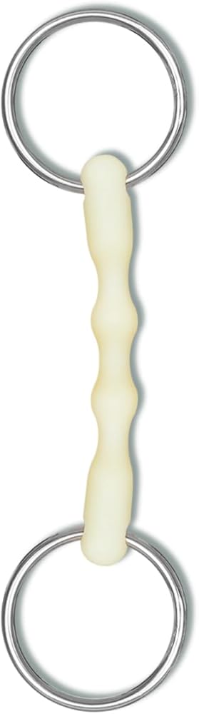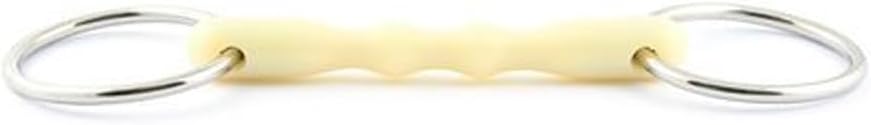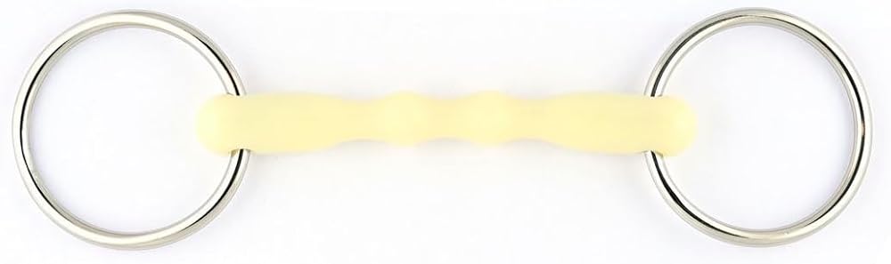 HAPPY MOUTH MULLEN SHAPED LOOSE RING BIT - APPLE SCENTED STAINLESS STEEL/POLYMER MILD SNAFFLE MOUTHPIECE BIT FOR HORSE RIDING Selecting the mildest bit that still allows for clear communication is crucial, and this mullen shaped loose ring horse bit meets that criterion perfectly. Featuring a unique apple scent and a soft polymer middle, this horse riding snaffle bit ensures maximum comfort for your horse. The smooth surface design minimizes scratching, offering a pleasant experience for your equine companion. The loose ring design allows the mouthpiece to slide, ensuring it rests in the most comfortable position for the horse, promoting relaxation and encouraging chewing for a happier, more contented ride. Unlike other snaffles, the loose ring design offers more movement and play, discouraging the horse from leaning on the bit. Designed with versatility in mind, this horse bit is the perfect choice for various equestrian disciplines, including hunting, jumping, eventing, dressage, hunter jumper, equitation, cross country, and leisure riding. Whether you're a seasoned rider or a novice, this horse bit caters to all skill levels and preferences.