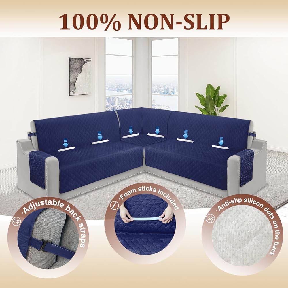 4 LAYER FABRIC: This l-shaped sofa cover is made of 4 layers special fabric. Surface are made of high quality 100% waterproof polyester. The middle layer consists of soft and comfortable foam fiber filling, providing extra comfort and support. The anti-slip layers on the bottom design with raised rubber dots. Durable & strong enough for pets scratching