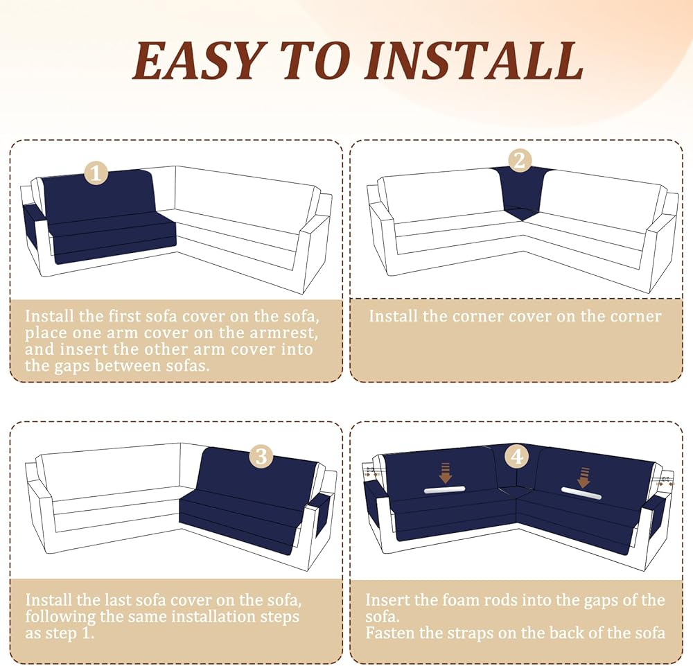 ANTI-SLIP DESIGN: This u shaped couch cover have incorporated adjustable elastic straps on the back of our cover. This allows you to easily tighten the fit according to your sofa's dimensions. We also have included non-slip foam which keep the non slip sofa furniture slip covers in place, preventing any shifting, wrinkling, or slipping