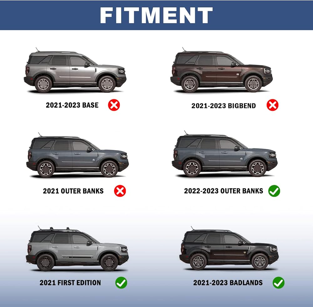 FITMENT: Roof Luggage Crossbars ONLY fit for Ford Bronco Sport First Edition 2021 & Outer-Banks 2022 2023 2024 & Badlands 2021 2022 2023 2024 Models.