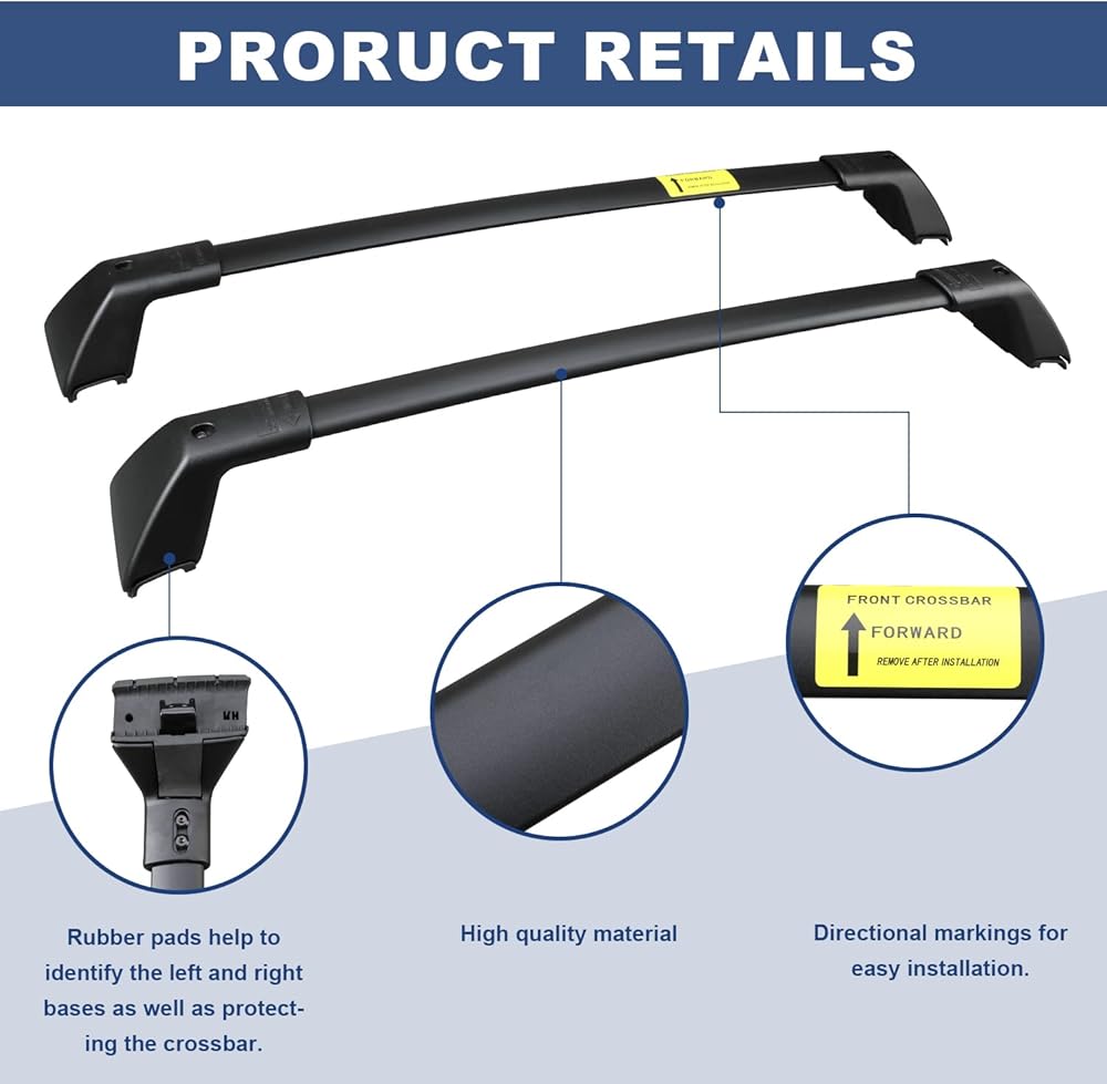 EASY INSTALLATION AND REMOVAL: The long crossbar needs to be installed at the front of the vehicle, and the short crossbar needs to be installed at the rear of the vehicle.NO need to drilling/modification of your car roof.