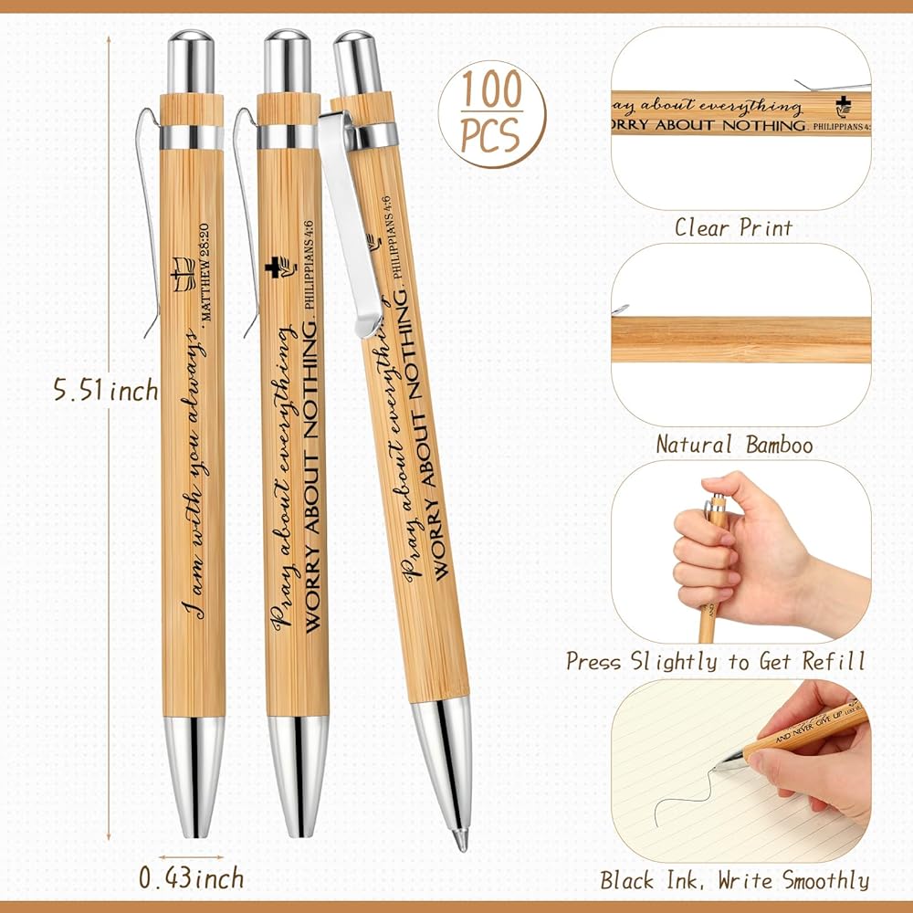 Classic and Elegant: the pocket notebook consists of a kraft paper cover and horizontal lined pages inside, adopting clear print on the surface, thick and sturdy, not easy to tear or fade; The Christian pens are made of bamboo material with black ink, comfortable to hold in hand