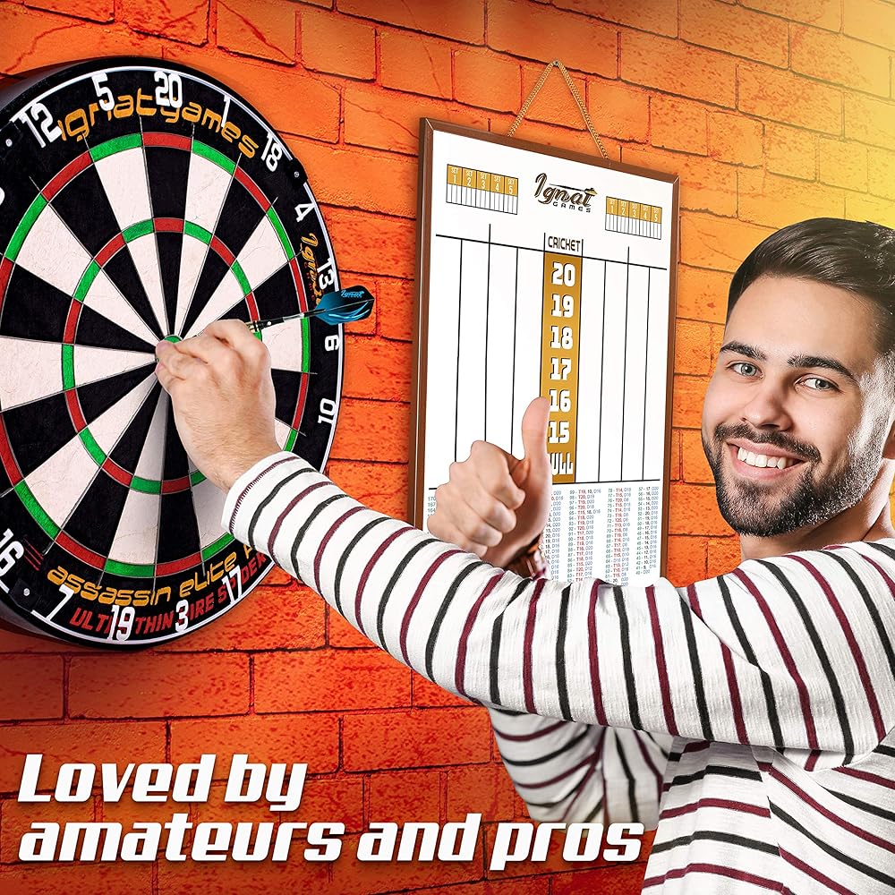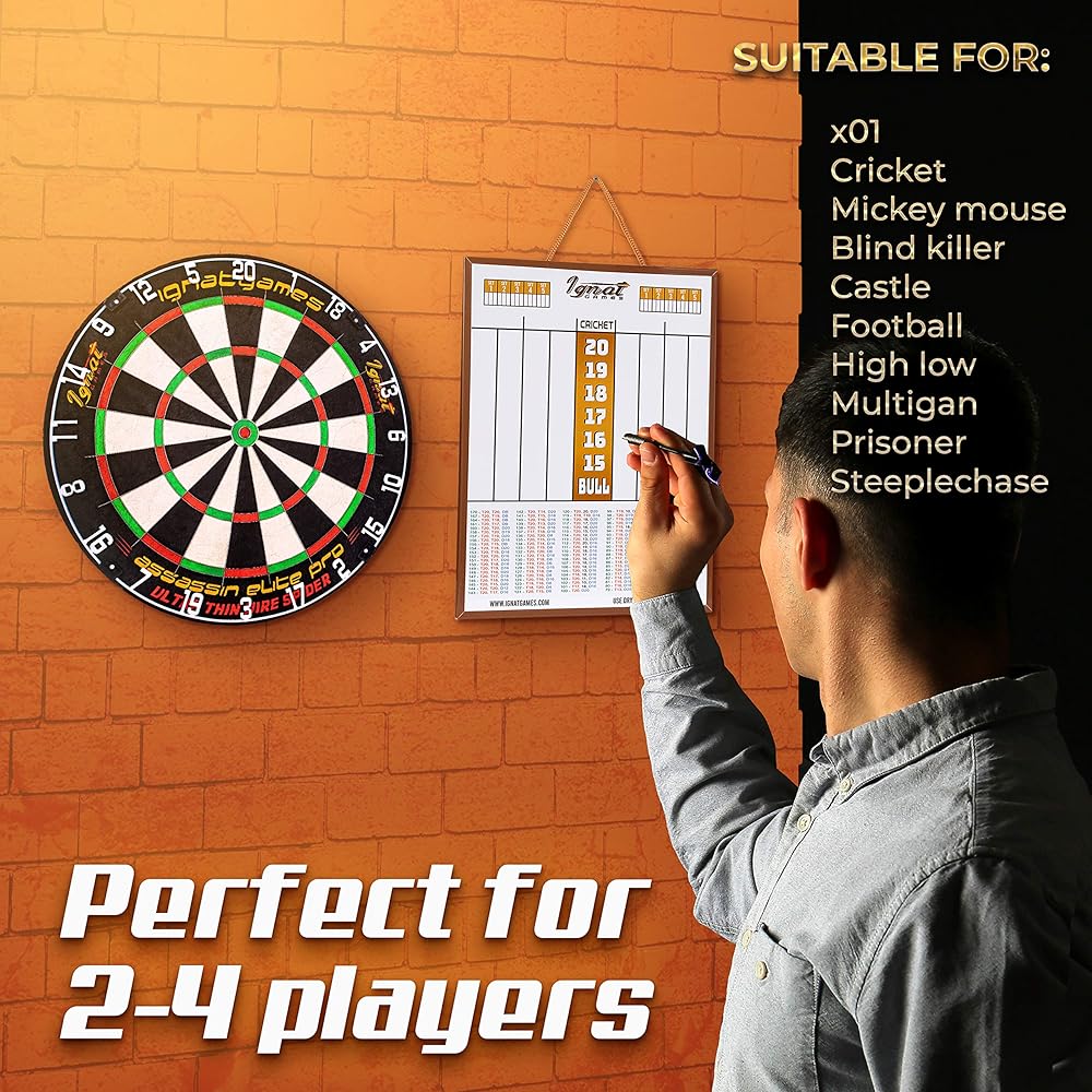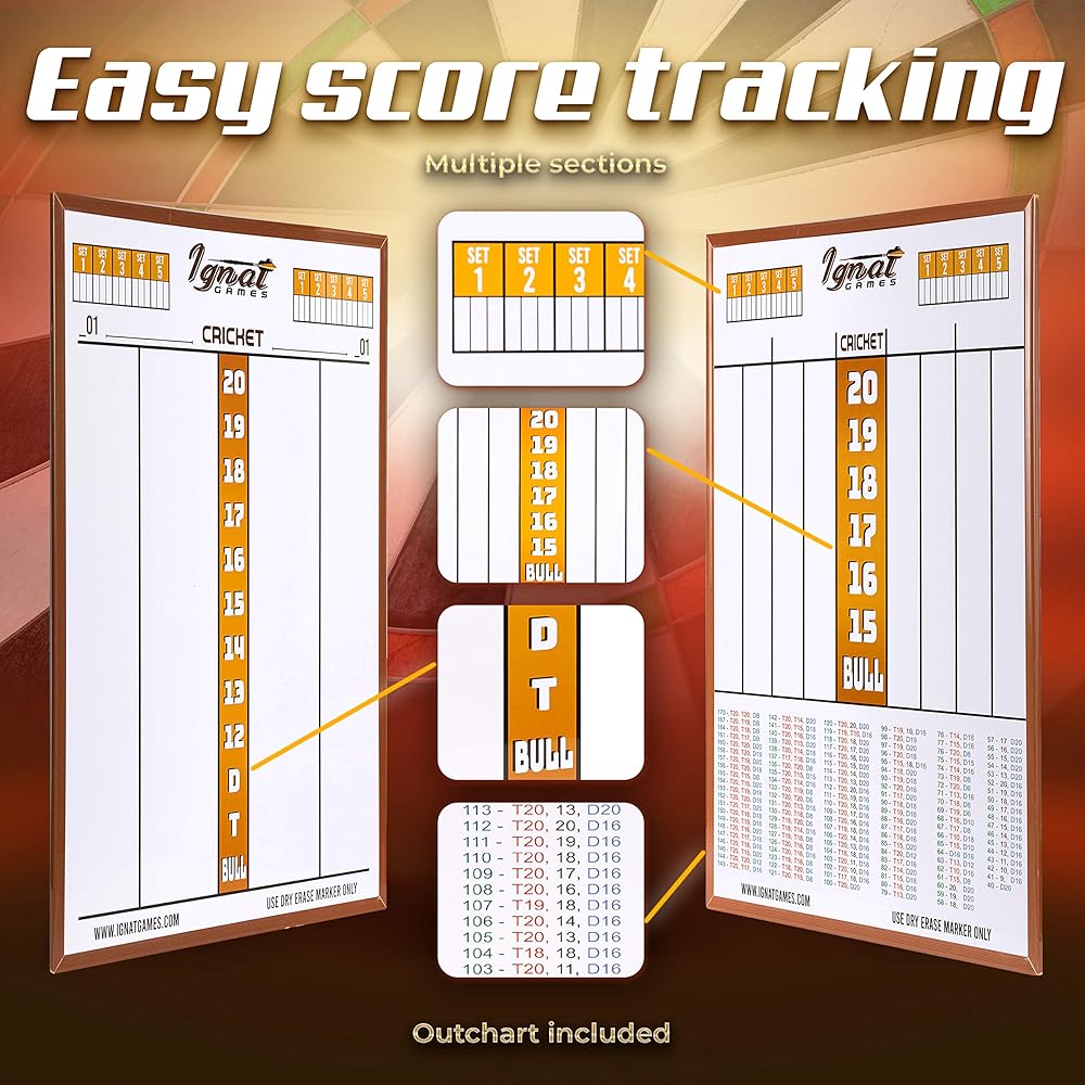 ✔SAVE MONEY ON QUALITY DARTS GEAR: Buy this professional scoreboard and the IgnatGames professional bristle dartboard and get 30% off on your darts score keeper & a 10-year warranty for your darts set.