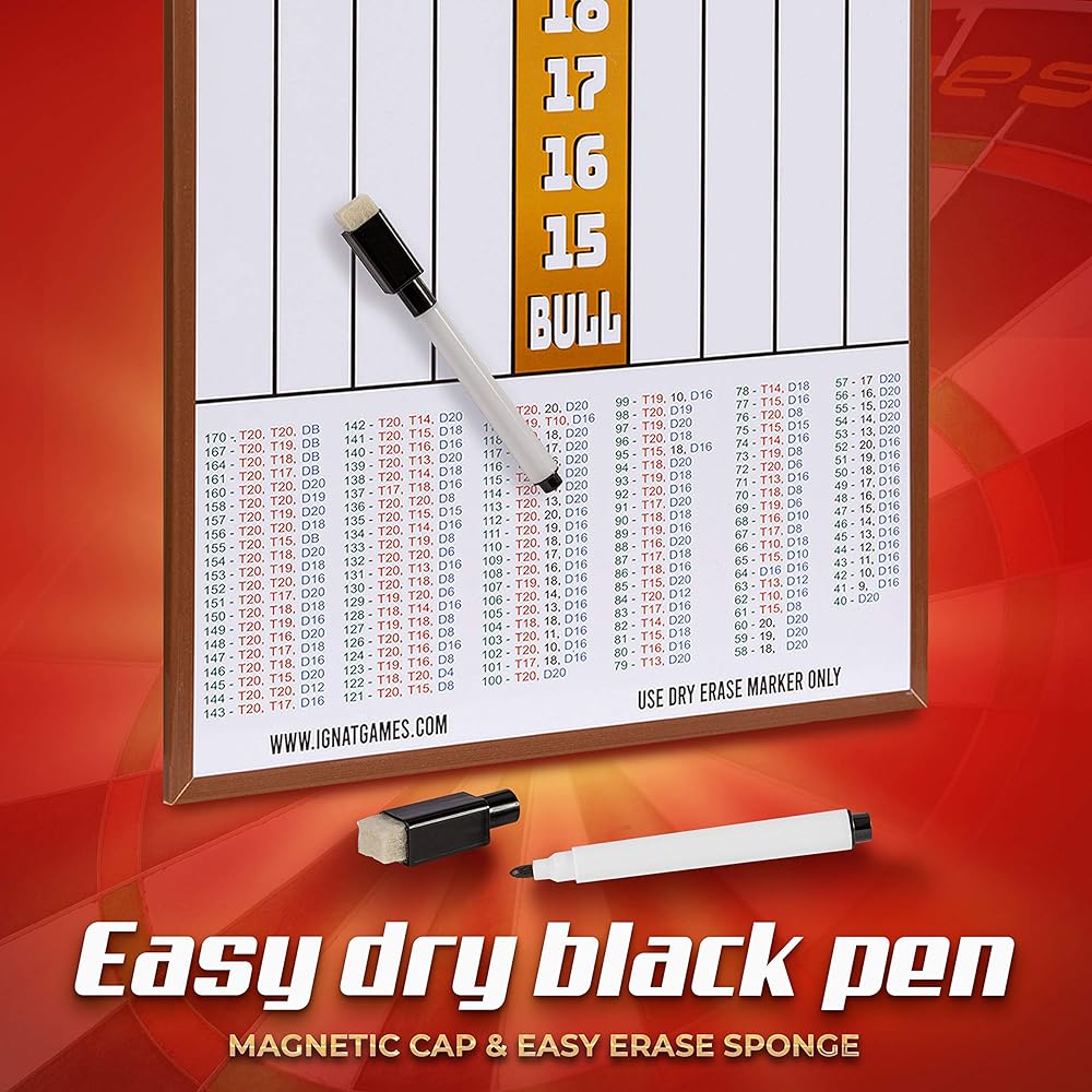 ✔PLAY A VARIETY OF GAMES: This darts scoreboard with printed out-chart is designed for X01, Cricket and 10+ other darts games. Enjoy the wide surface of the dart scoreboard dry erase to track your scores.