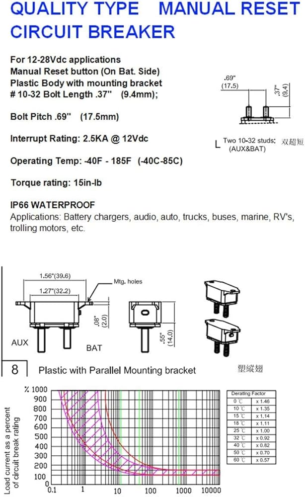 Package Included: 1x 50A Resettable Circuit Breaker with Plastic Cover