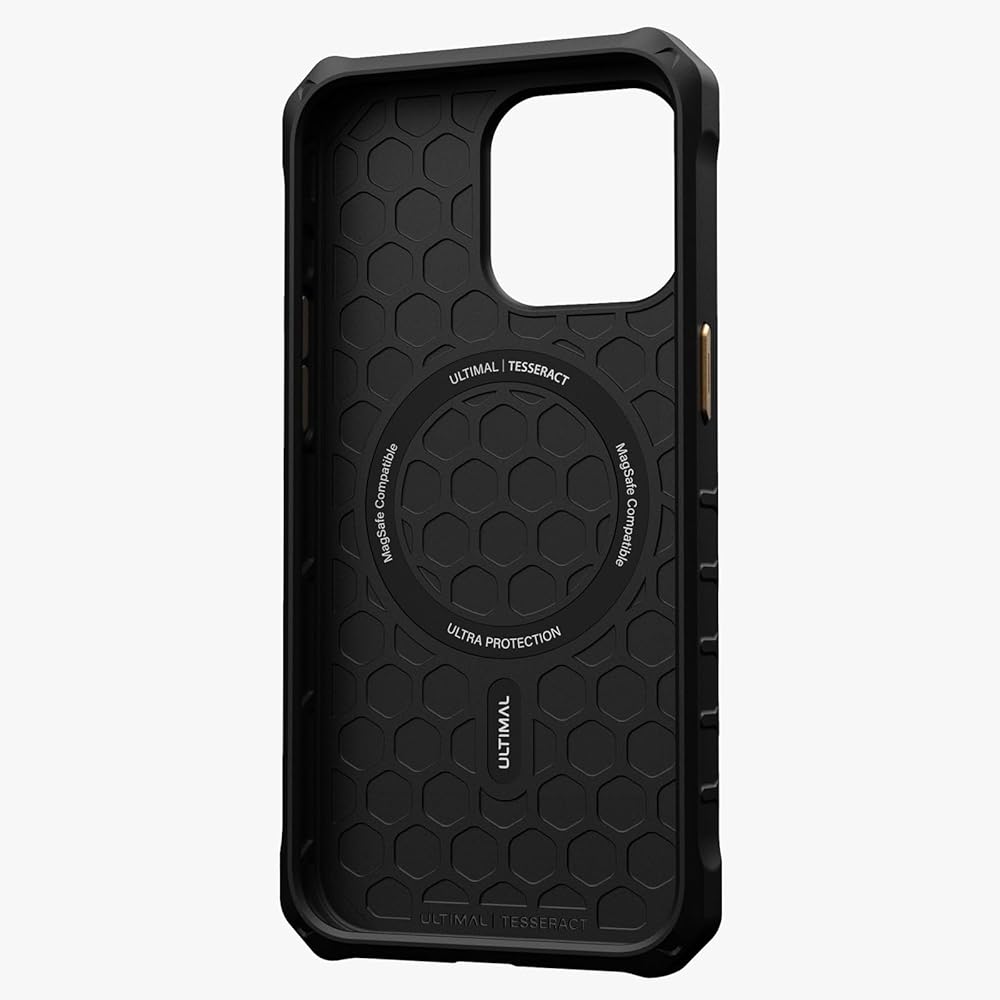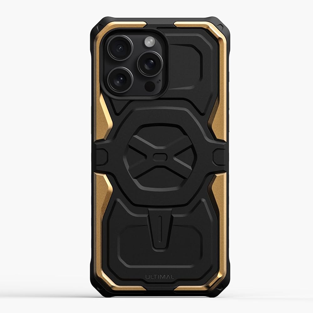 ULTIMAL Case Compatible with iPhone 15 pro max 6.7'', Military Shockproof Case with Sporty Metal Frame Design Compatible with Magsafe, Rugged Slim Cover for Men (Black/Gold)