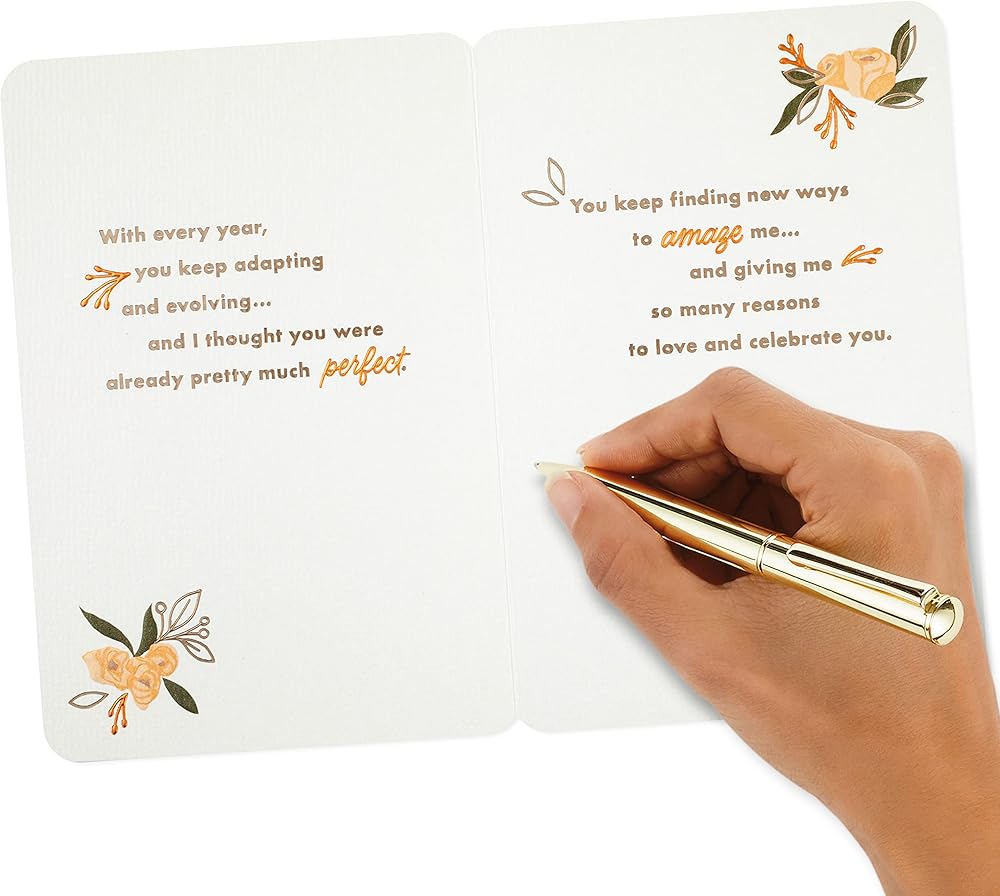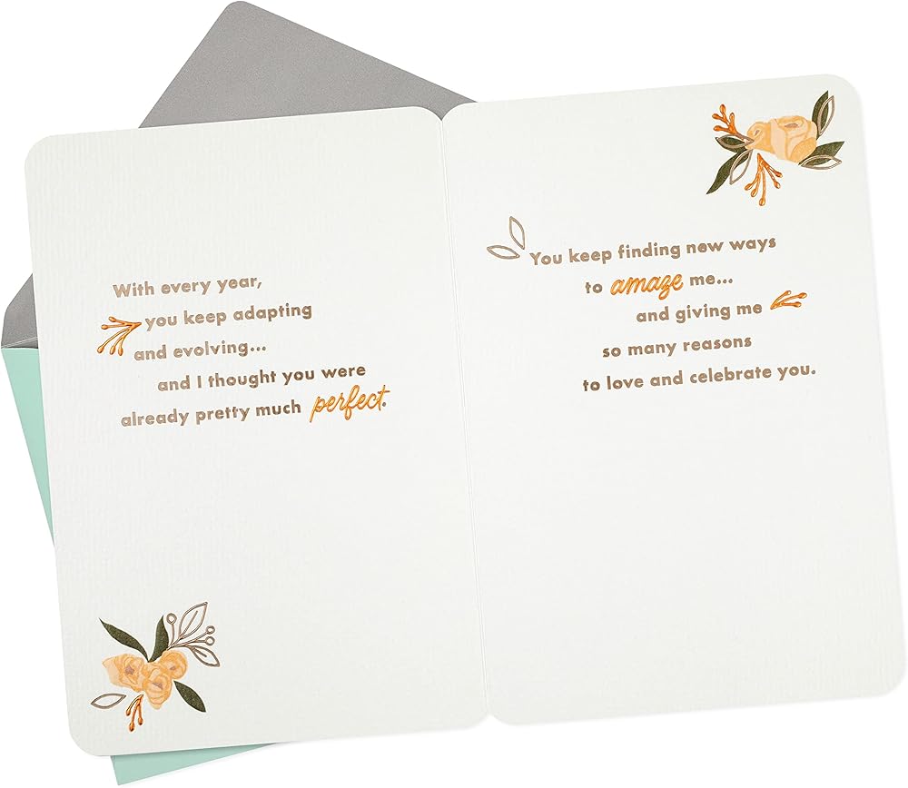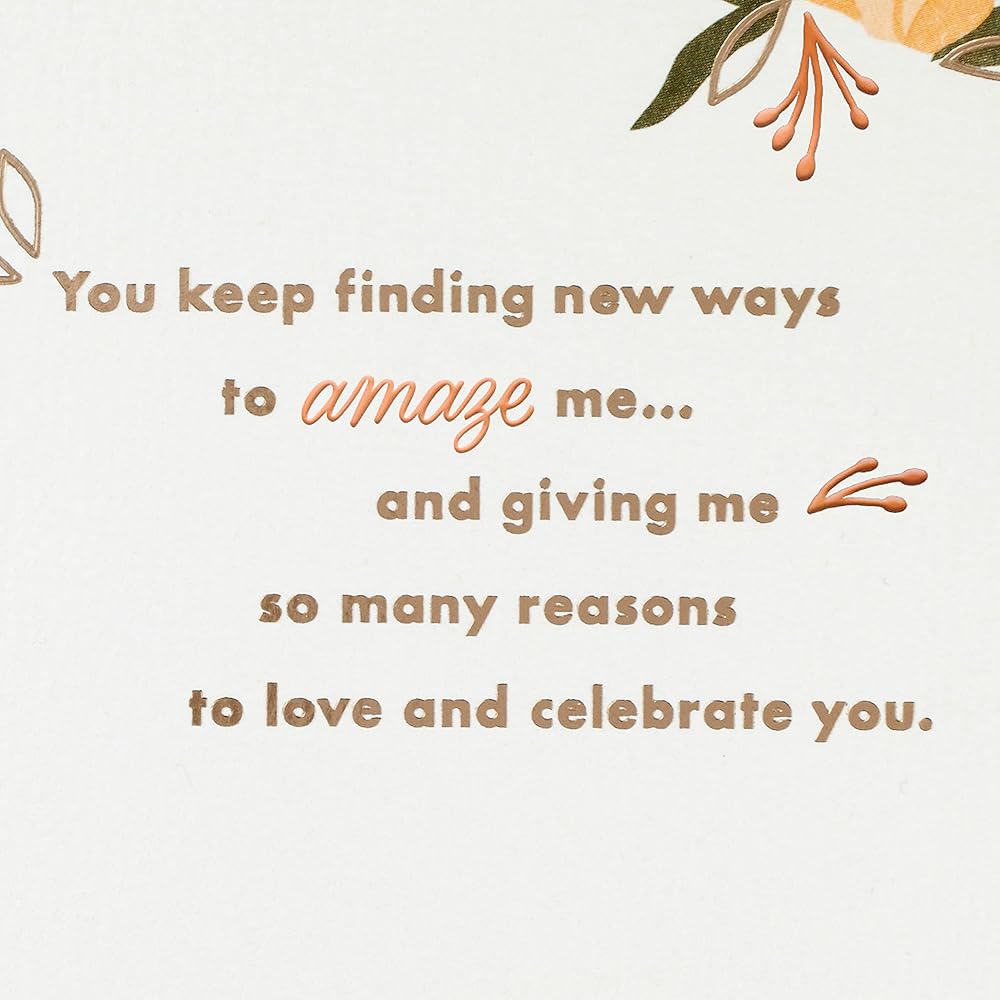 Wish your wife a very happy birthday with a card that tells her how much you love and appreciate her. With a beautiful design and a message of gratitude, it's sure to make her feel extra special. The Hallmark brand is widely recognized as the very best for greeting cards, gift wrap, and more. For more than 100 years, Hallmark has been helping its customers make everyday moments more beautiful and celebrations more joyful.