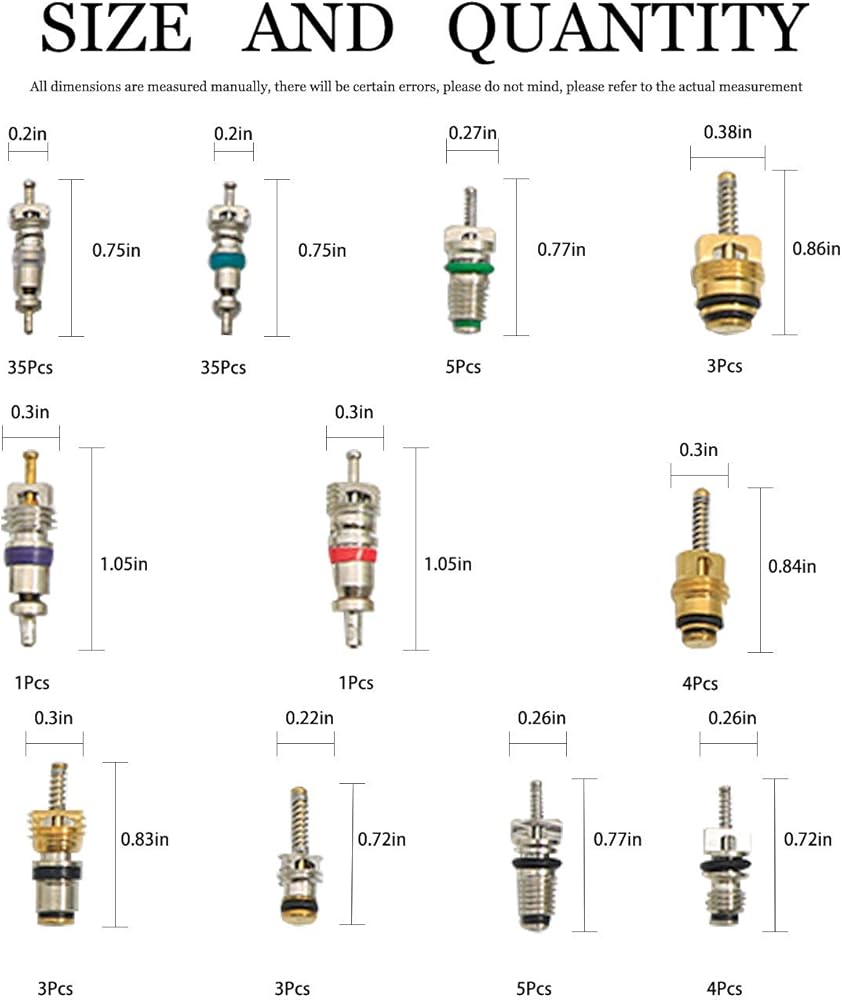 102 Pcs A/C Valve Core R12 R134a Automotive Air Conditioning Refrigeration Tire Valve Stem Cores Remover Tool Assortment Kit