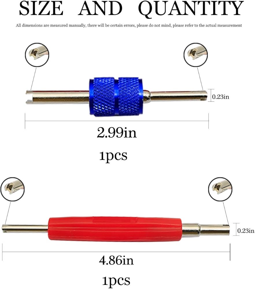 Car Air Conditioner Valve Core Schrader Valve Cores Accessories A/C R12 R134a Refrigeration Tire Valve Stem with Double Head Dual Dismantling Remover Installer Tool Assortment Kit