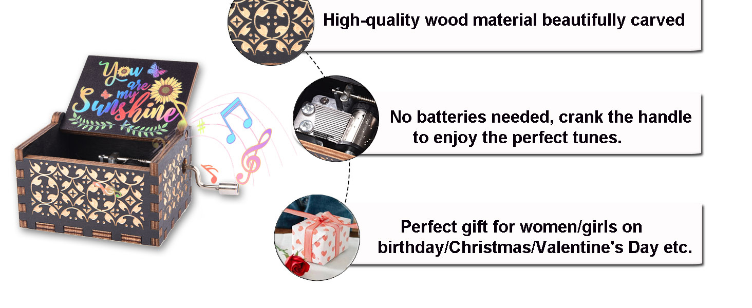 Classical Music - The music box brings the melody of "You are my sunshine", and the music box is engraved with words to express your feelings to your loved ones.