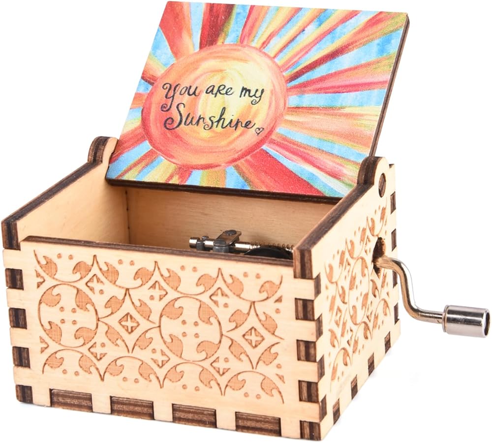 You are My Sunshine Music Boxes, Wooden Hand Crank Laser Engraved Vintage Unique Musical Box for Birthday, Christmas, Valentines Day, Mother's Day, Anniversary, Wedding