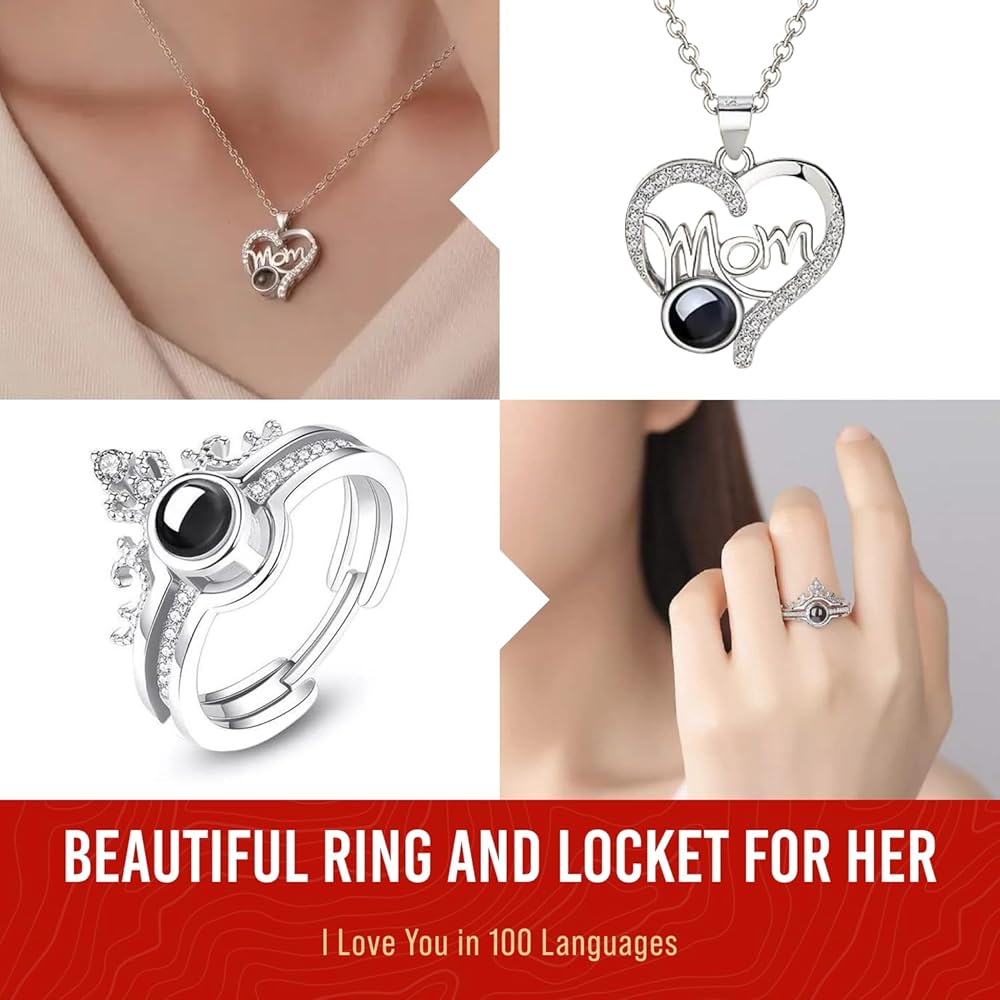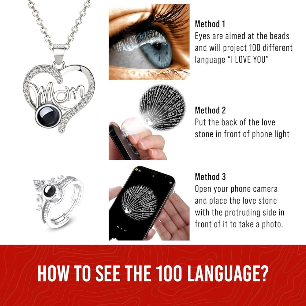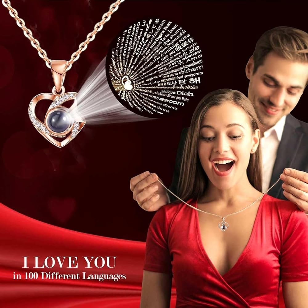 💖NECKLACE & RING SET - Our rose box comes with a full set: in 100 languages "I Love You" necklace and ring, making it a unique great gift. Rosas eternas, regalos para mujer.