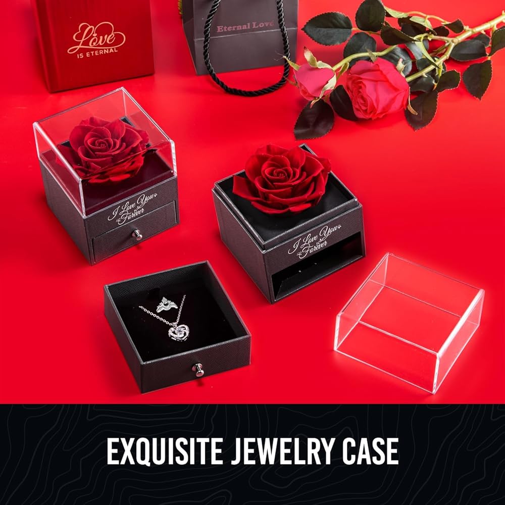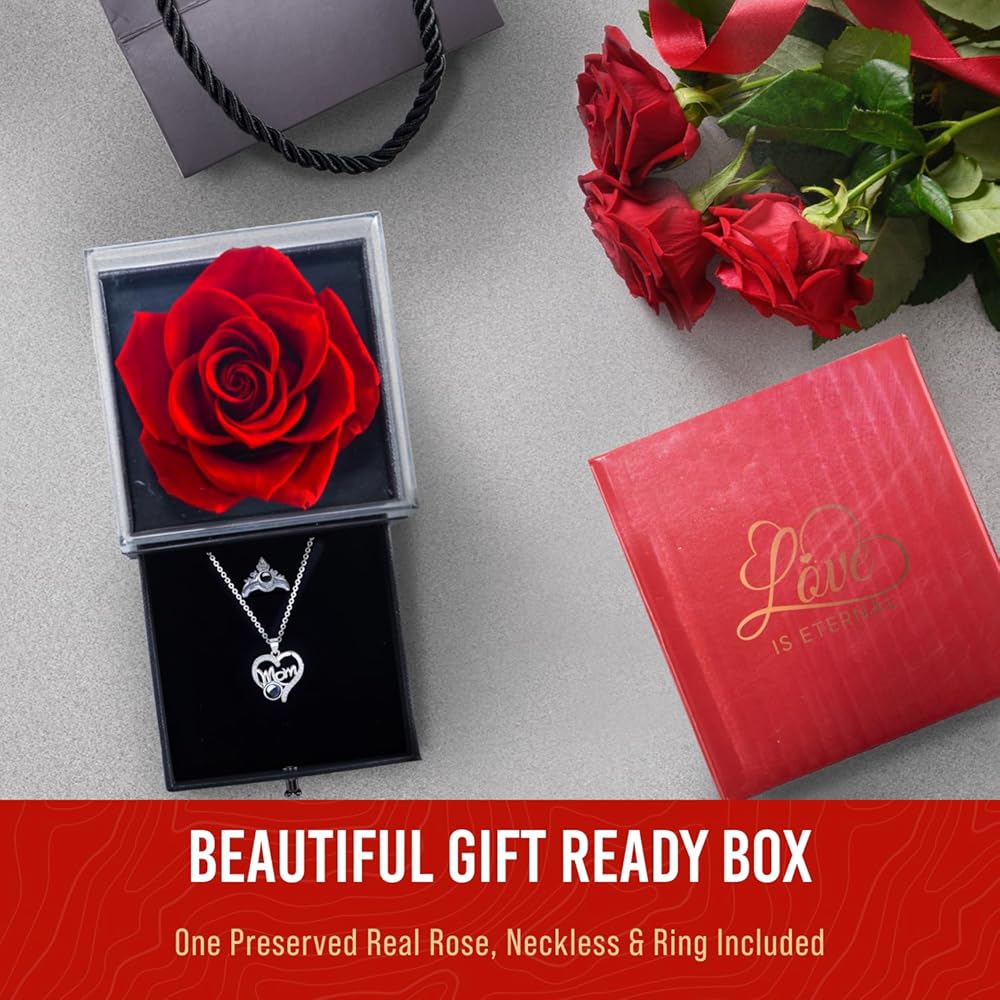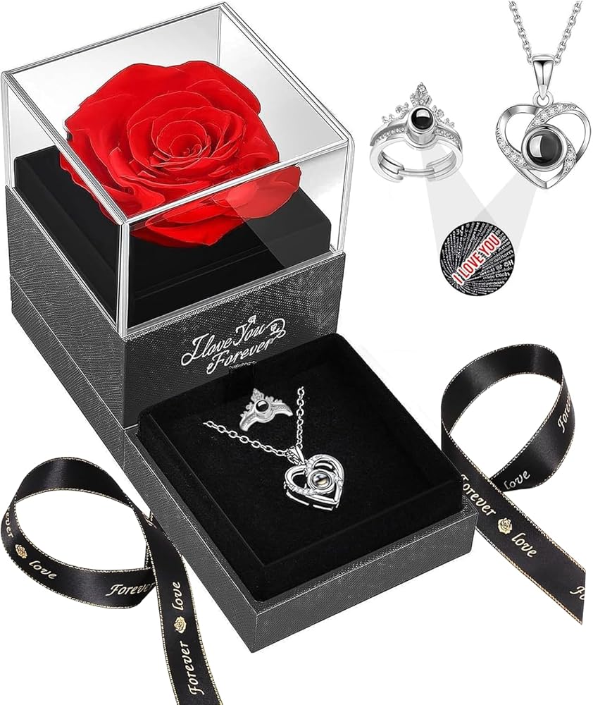 Premium Preserved Forever Real Rose, I Love You Necklace & Adjustable Ring - Cute Valentine Gift for Her -Anniversary Birthday Gifts for Women, Wife, Mom Who Has Everything -I Love You Gift Girlfriend