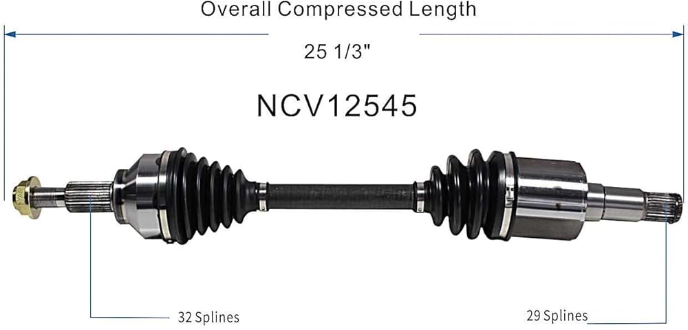 • Left Front (Driver Side); 25-5/16 inch compressed length; 32 spline outer joint; 29 spline inner joint