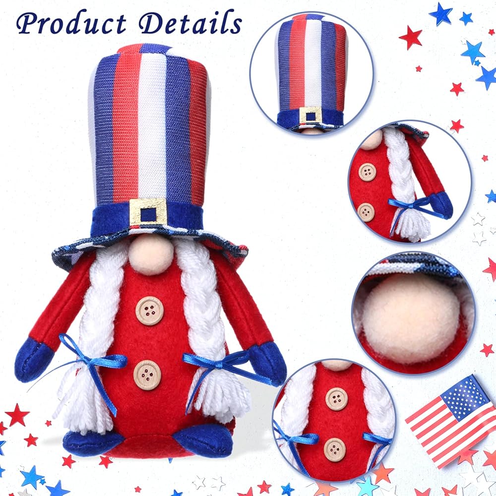 🎆【Decoration for Festivals】: These Gnomes Couple Will Create the Festvie Touch on the 4th of July Party, Patriotic Themed Party, President Day Decor, Memorial Day Decoration, Party Decor, Which Also As the Perfect Gift for Your Friends.